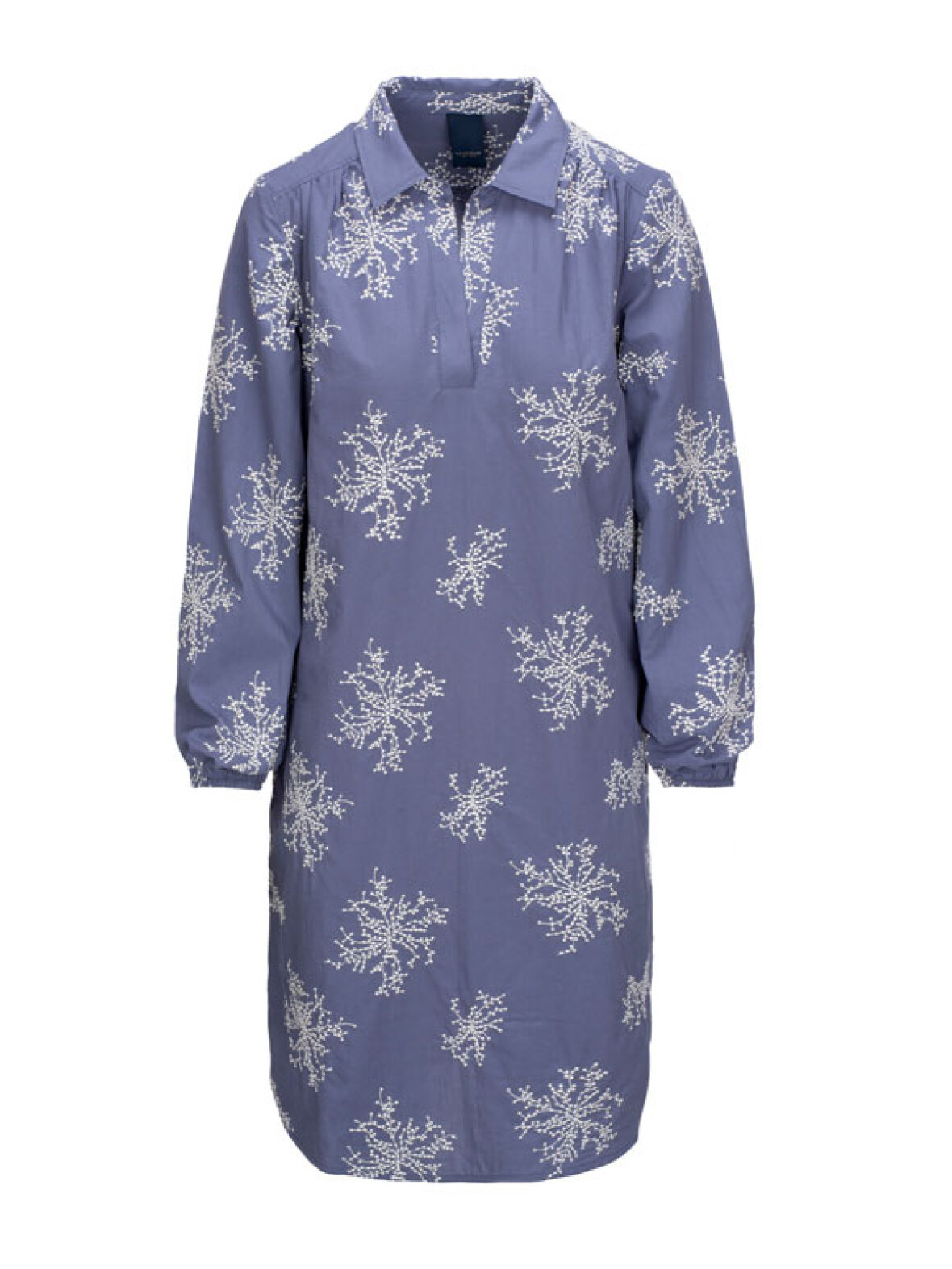 Fin blå kjole med krave og elastik i ærmeåbningen fra Luxzuz one Two. Kjolen har sidelommer.
