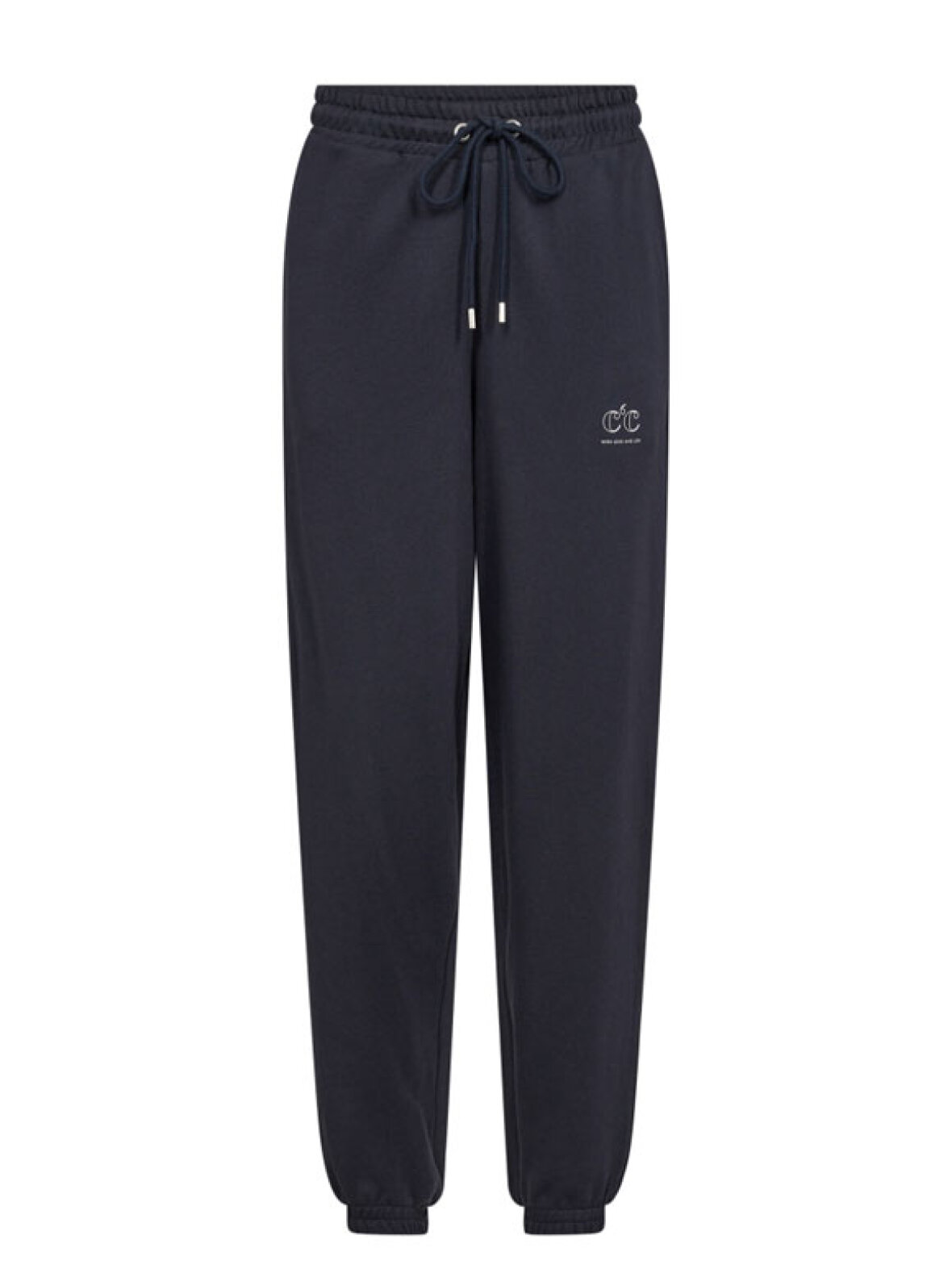 Cool sweat bukser fra Co Couture i en fin navy blå farve. Busker med med lommer i siden, elastik i livet, snøre og logo ved den ene lomme.