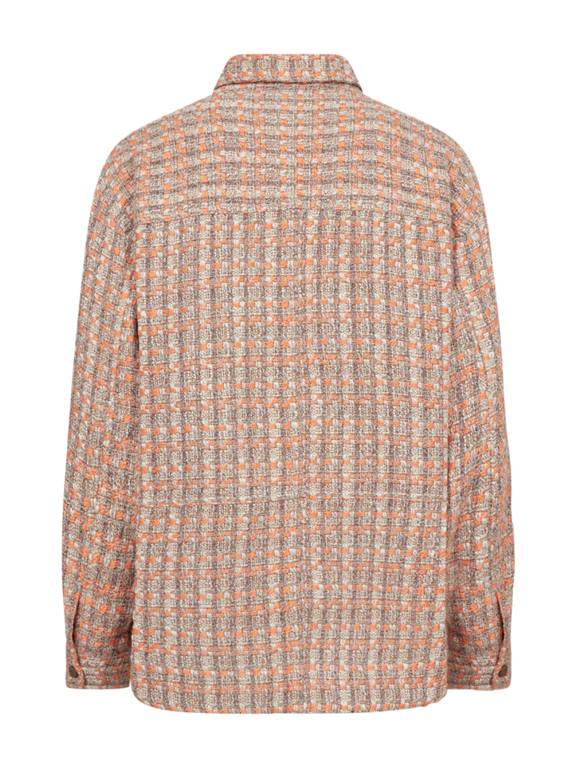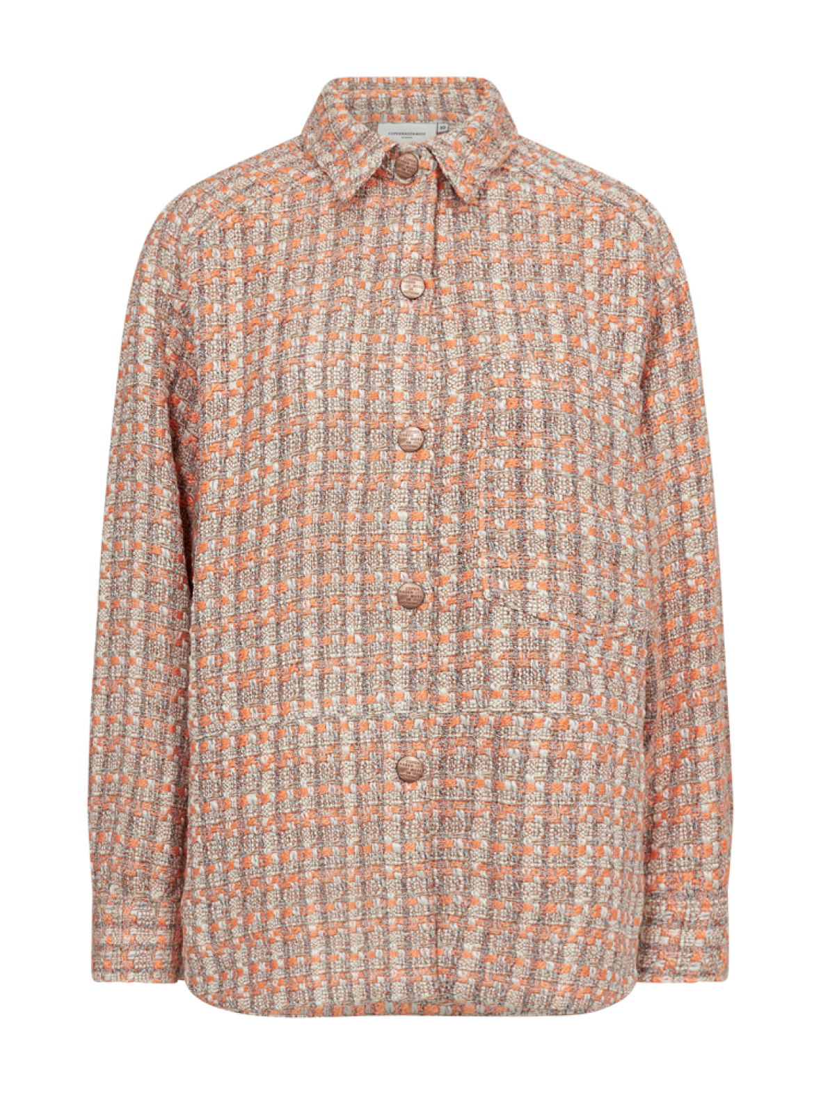 Super super cool jakke fra Copenhagen MUSE. Jakken er lavet i en eksklusiv, mønstret kvalitet i en frisk orange farve, lange ærmer samt knaplukning og krave.