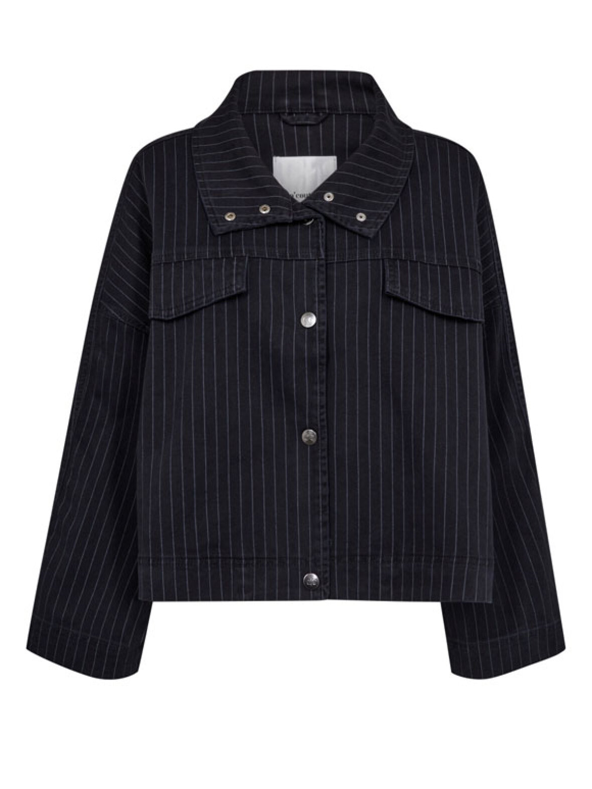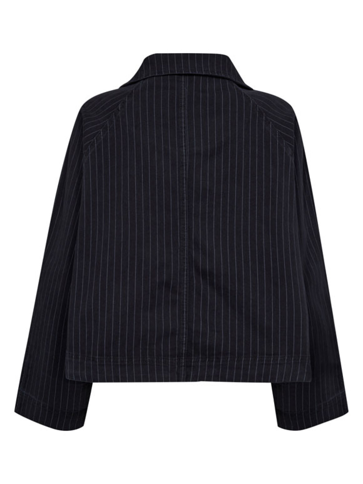 Co'Couture præsenterer en sofistikeret jakke i blåsort pinstripe, der forener stil og komfort på en moderne måde. Den brede pasform og boxy silhuet giver jakken et afslappet, men alligevel stilfuldt look, som let kan styles med mange forskellige outfits. Jakken behagelig at have på hele dagen, samtidig med at den bevarer et elegant udtryk. Denne tidløse jakke er et alsidigt og opdateret valg til garderoben – perfekt til både hverdag og særlige anledninger, hvor du ønsker at fremstå både stilfuld og komfortabel.