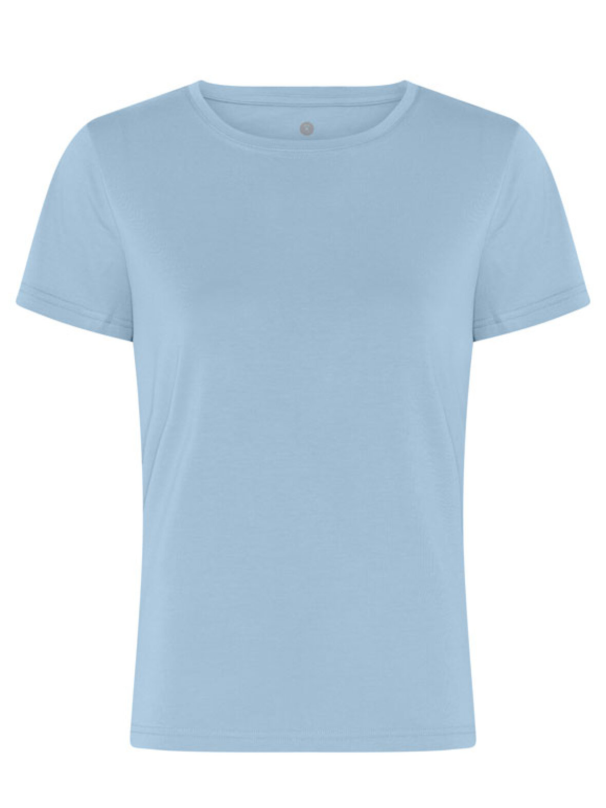 Klassisk basis T-shirt i en smuk lyseblå nuance. Den bløde kvalitet i bambusviskose og økologisk bomuld føles let mod huden og giver en åndbar komfort med behagelig stræk – perfekt til både hverdag og afslapning.