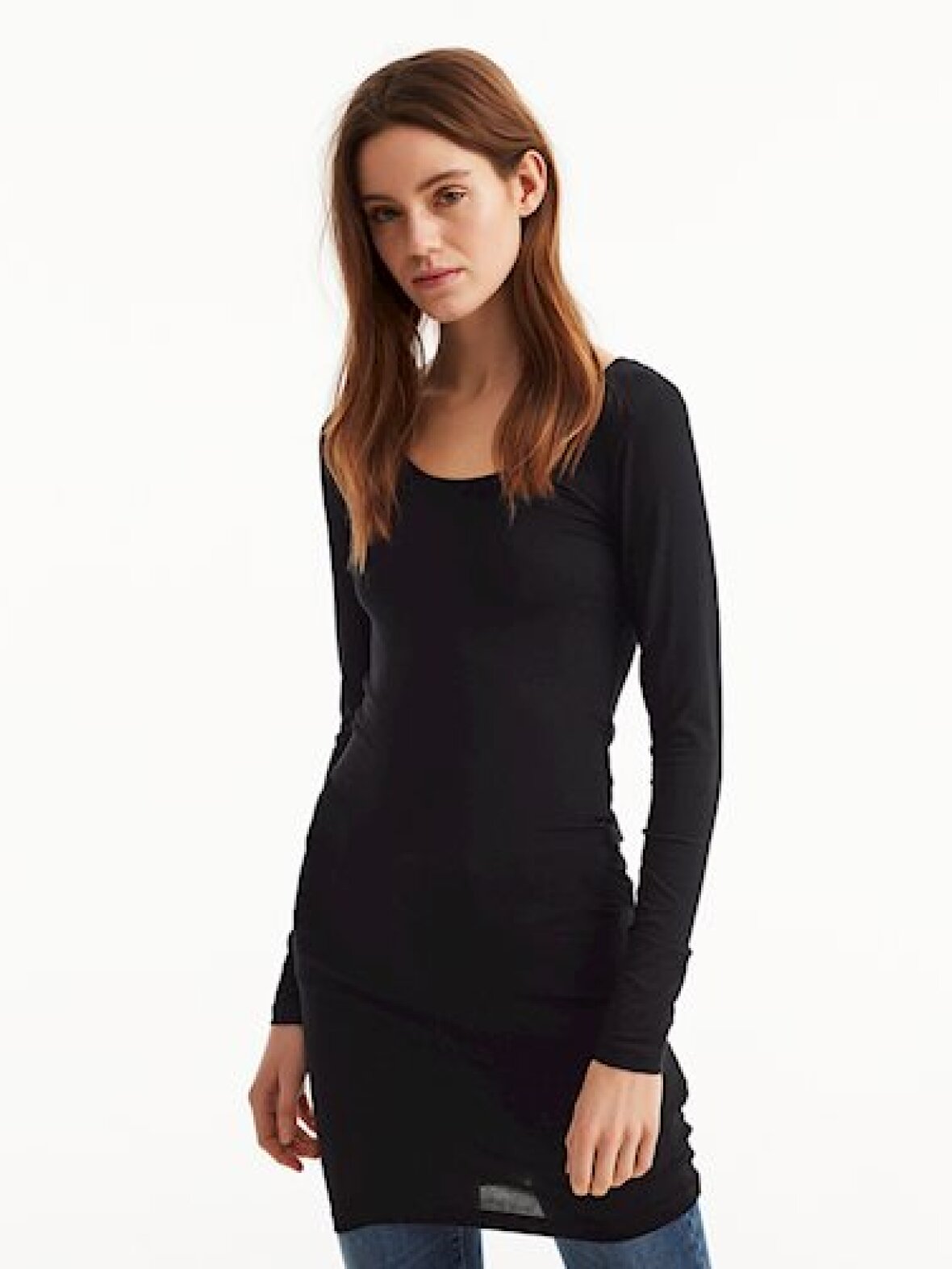 Dejlig stretchy og blød lang basic bluse, som har lange ærmer og rund hals.