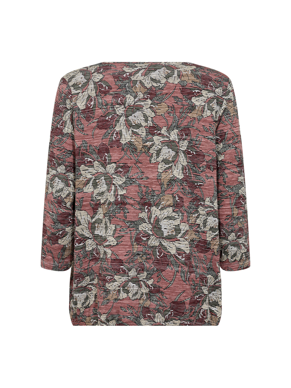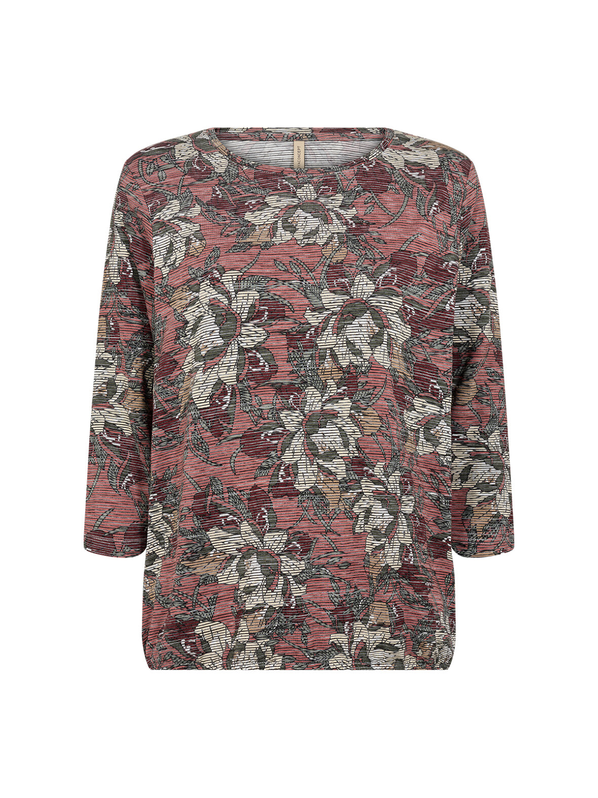 SC-Galina 49 fra Soya Concept er en feminin og komfortabel bluse med et dekorativt blomsterprint i varme røde og jordnære nuancer. Den lette ribstruktur i stoffet kombineret med elastik i livet giver en flatterende pasform, der falder pænt uden at stramme. En oplagt bluse til både hverdag og arbejde.