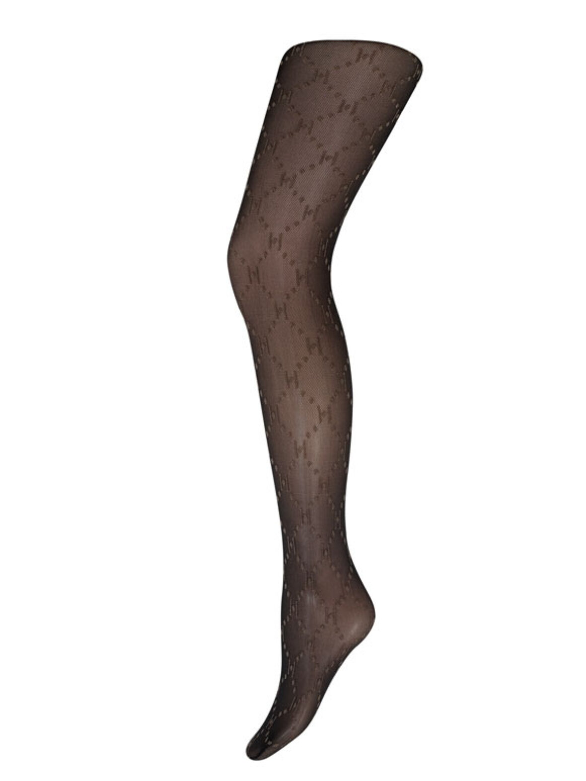 Elegante, transparente strømpebukser i brun med diskret logo-mønster, der giver et eksklusivt og feminint udtryk. Perfekte til kjoler og nederdele, når du vil skabe et blødt og stilfuldt look med varme toner.