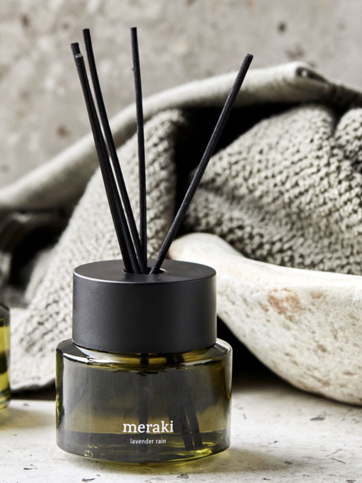 Skab en rolig og indbydende stemning i hjemmet med disse elegante duftpinde fra Meraki. Duften åbner med friske topnoter af kamille og citron, som smelter sammen med en blød kerne af lavendel. Basen afrundes med geranium, eukalyptus og patchouli, der giver en harmonisk og balanceret aroma. En stilfuld diffuser, der både pynter og spreder velvære i ethvert rum.