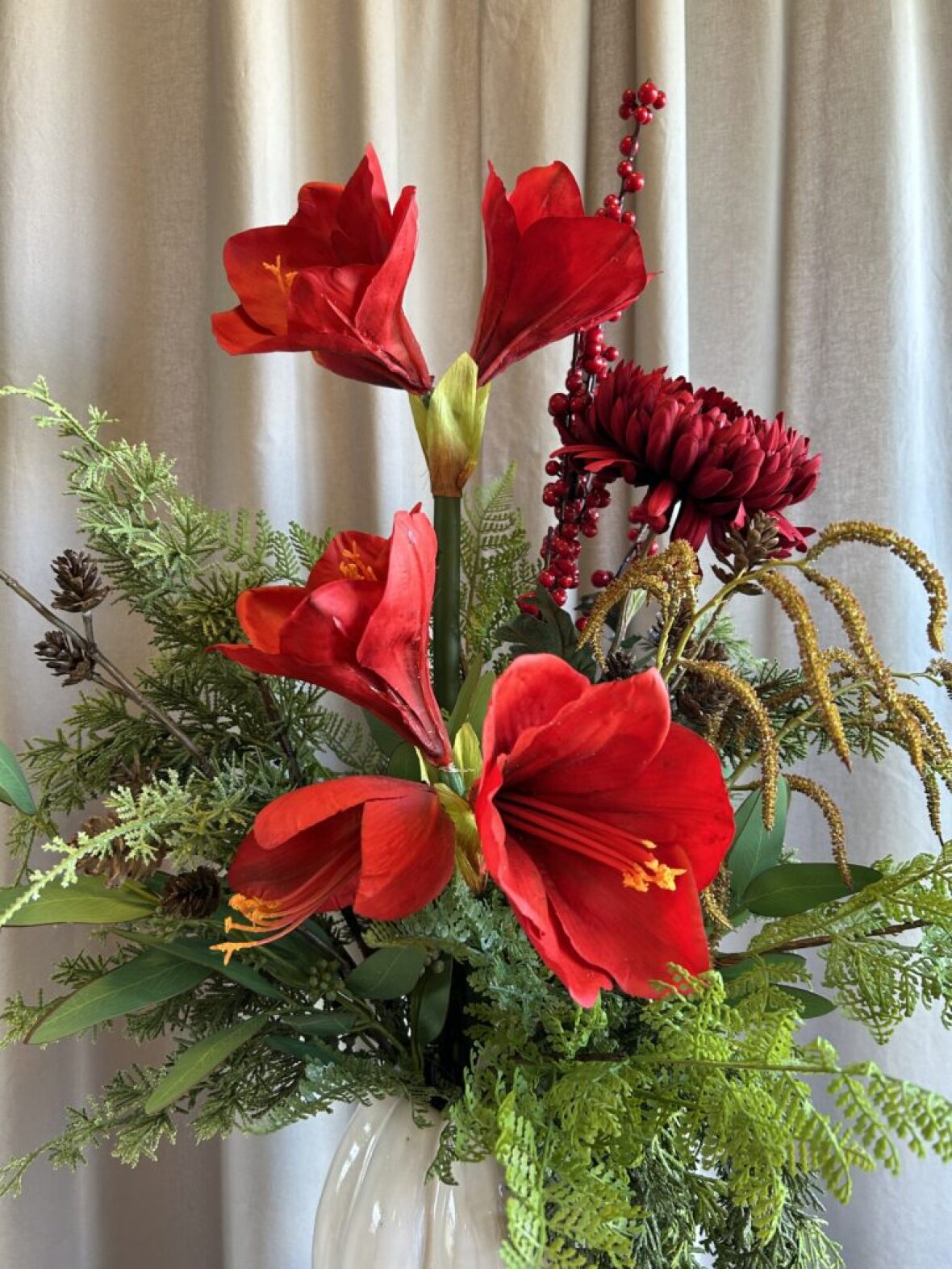 En smuk, naturtro amaranthus i varme naturfarver, der tilfører et elegant og organisk udtryk til dine dekorationer. Perfekt til høje vaser og flotte opstillinger.