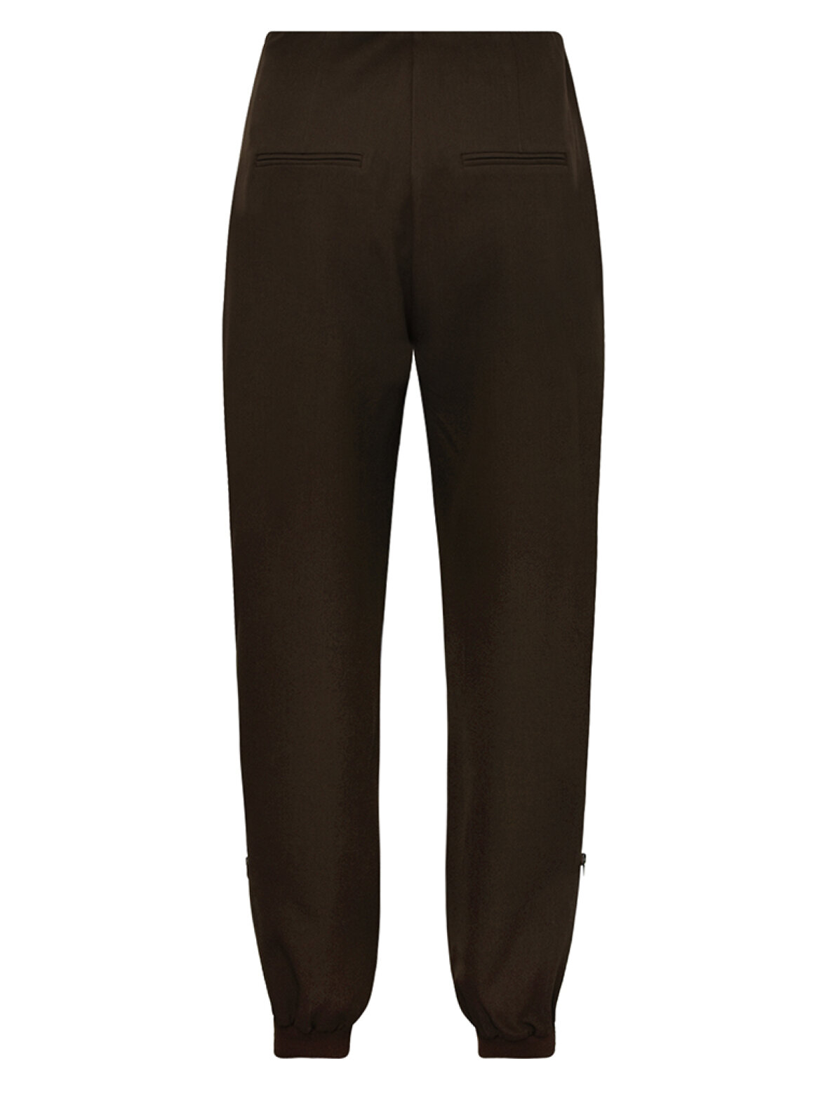 MilenaGO Moe bukserne fra Gossia er en stilren og moderne model i brun med elastiske afslutninger og små lynlåse ved anklerne. Den kombinerer det afslappede look fra joggers med det elegante snit fra habitbukser – perfekt til både hverdagsbrug og smart casual styling.