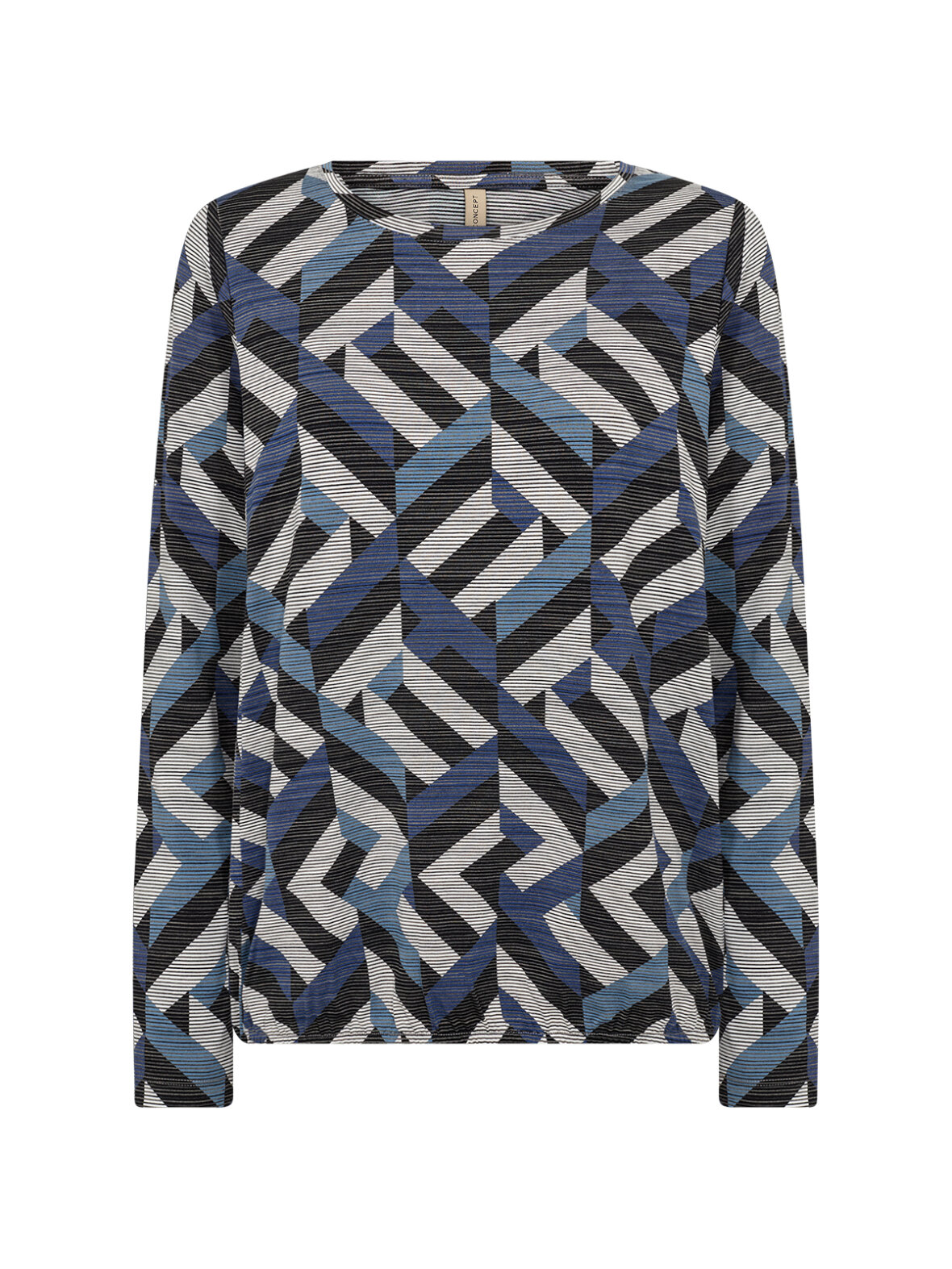 En flot blå mønstret bluse, der giver dit outfit et friskt og moderne twist. Den bløde kvalitet føles behagelig på huden, og elastikken i livet sørger for et flot fald og en pasform, der sidder lige i skabet. En nem hverdagsfavorit, der også kan dresses op.