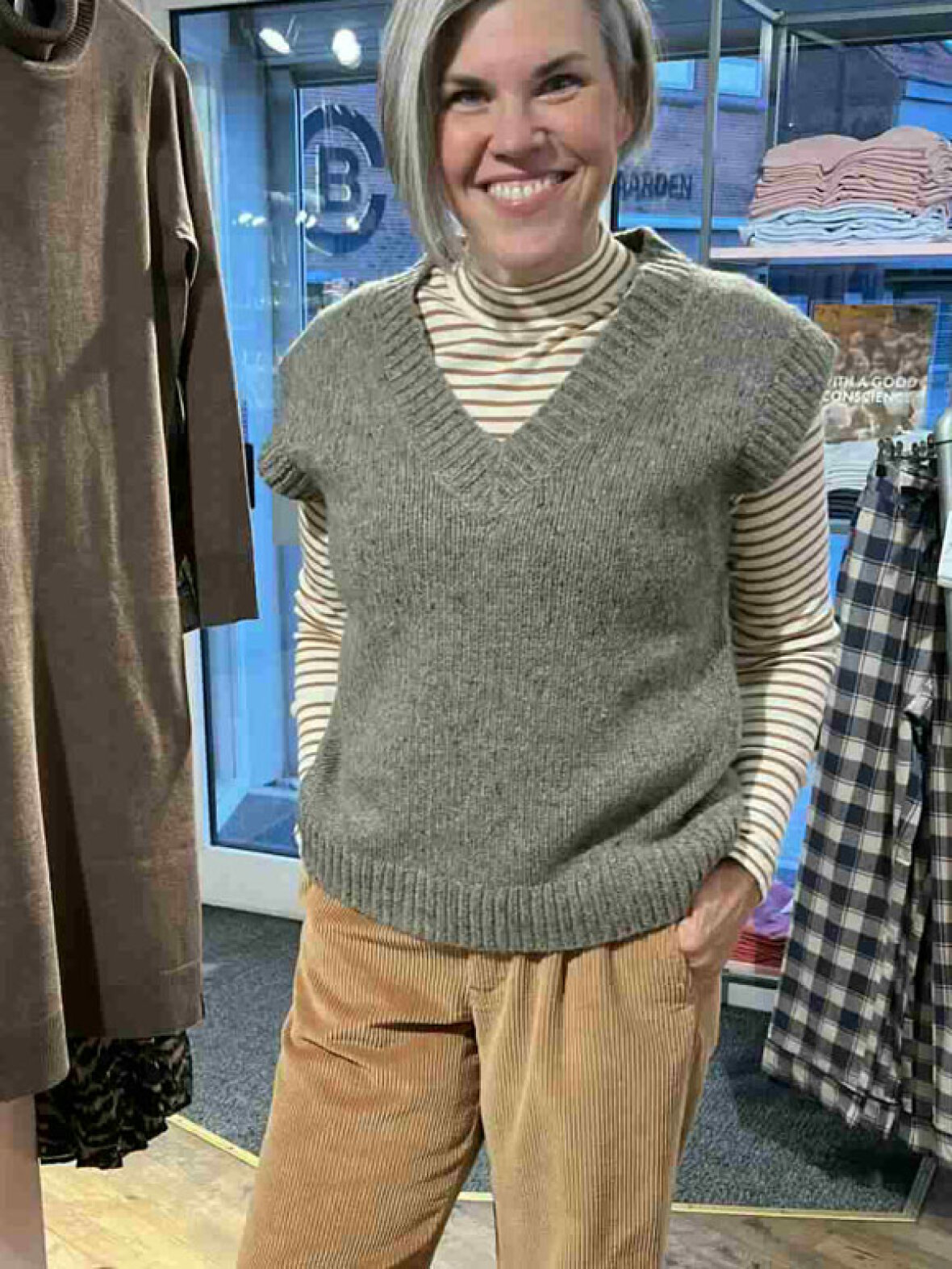 Allia-M vesten fra mbyM er en tidløs strikvest i lækker uldkvalitet. Den har en dyb V-udskæring, løs pasform og normal længde, som gør den nem at style over både skjorter, bluser og kjoler. Et must-have til layering, når garderoben skal have et moderne og afslappet twist.