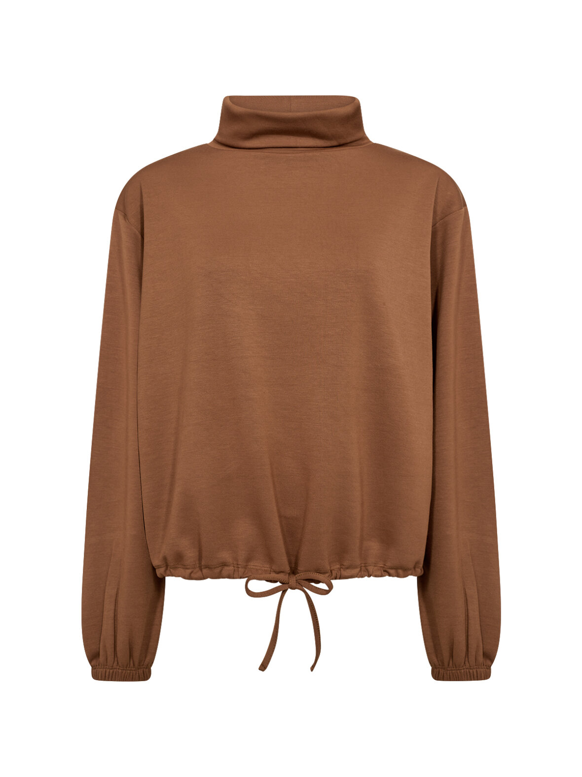 SC-Banu 203, Bluse camel – Blød high-neck bluse med snøre i livet