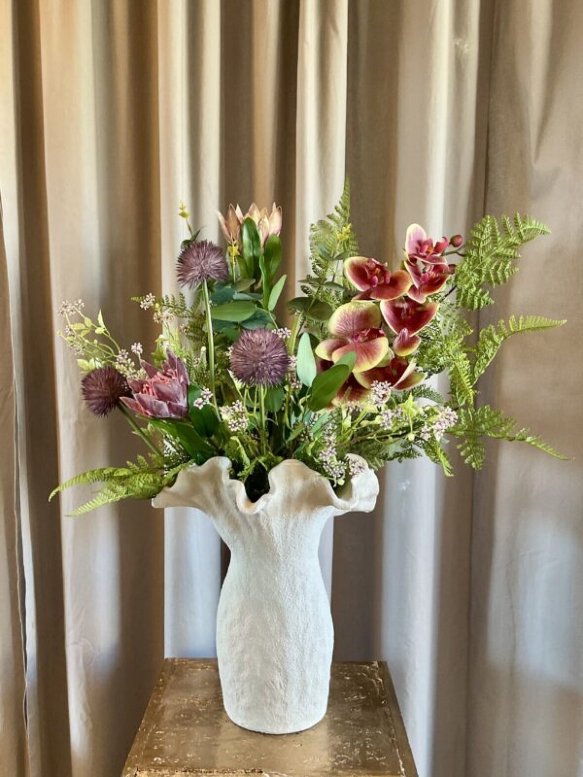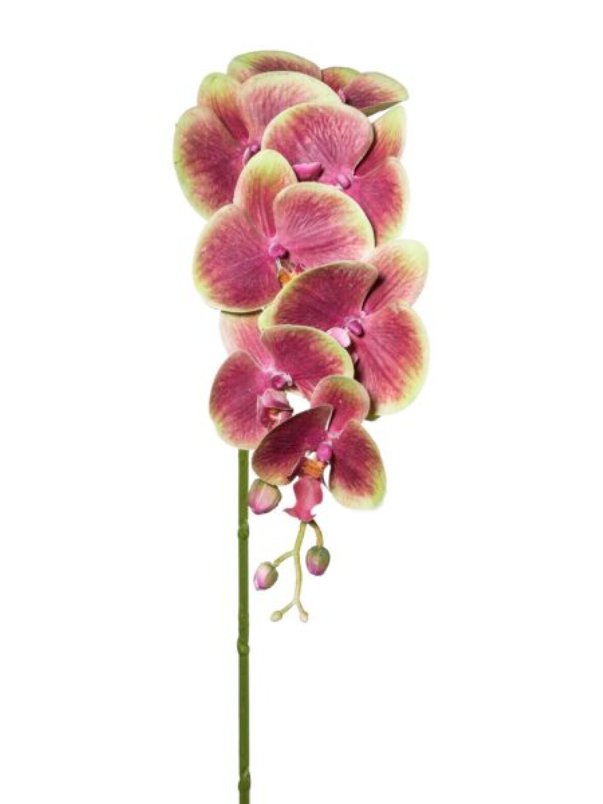 Tilføj et elegant og farverigt touch til din indretning med denne smukke orkidé på 87 cm. De store blomster i pink-lilla nuancer med grønne toner giver et eksklusivt og naturtro udtryk – perfekt i en vase eller som del af en dekorativ opstilling.