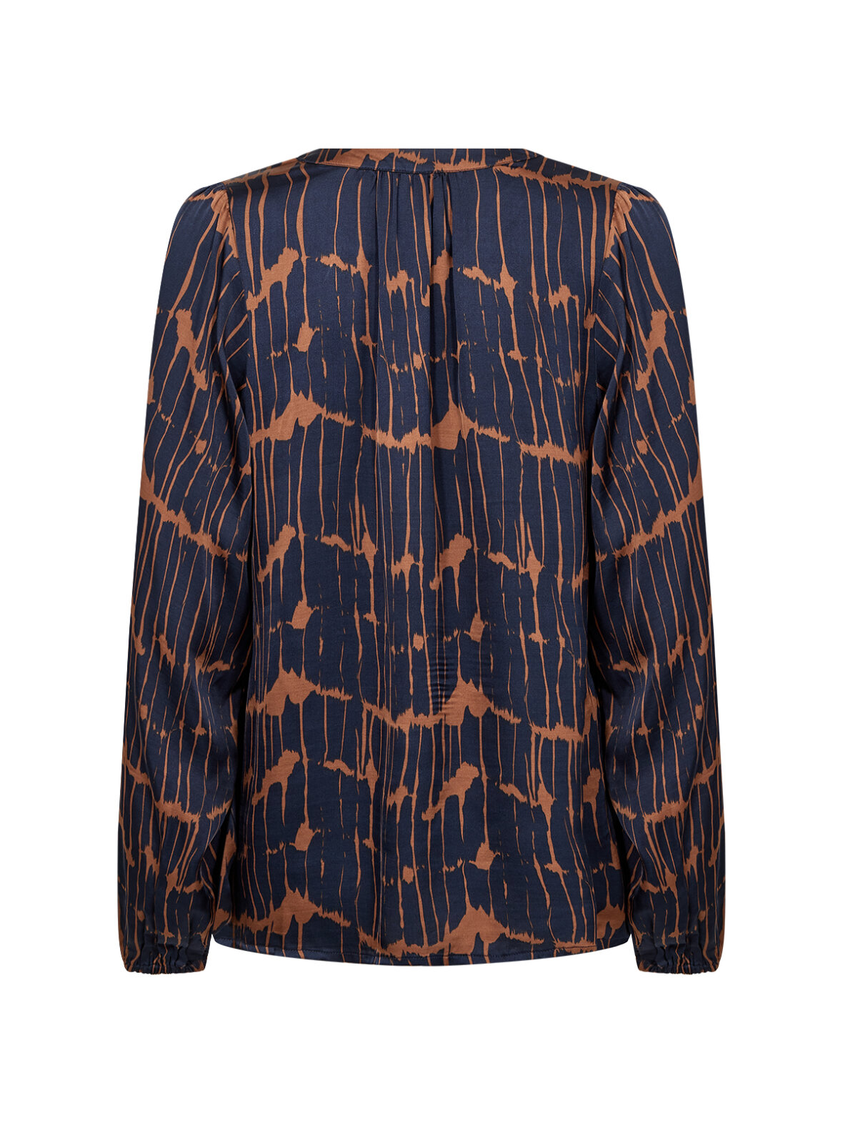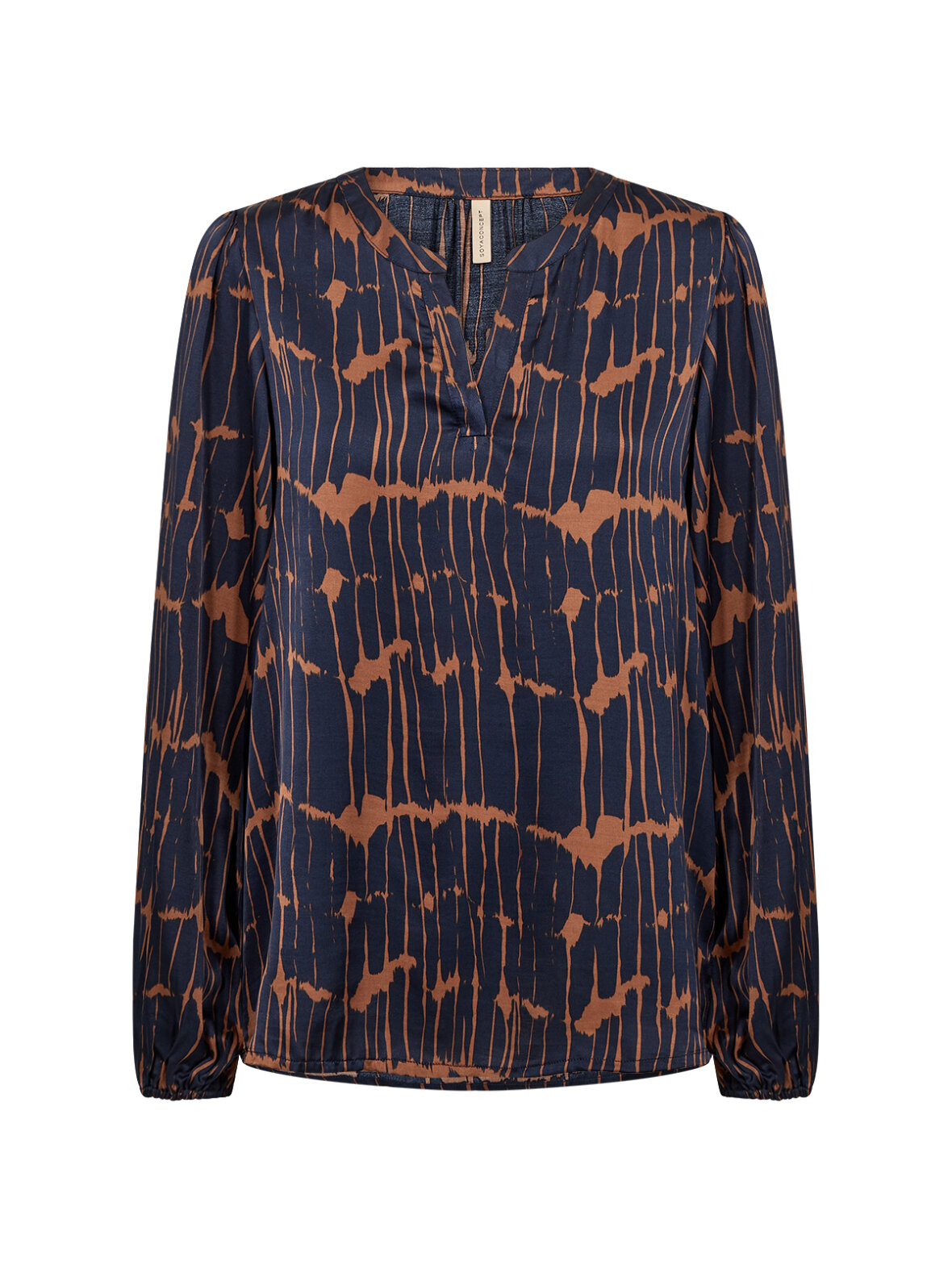 SC-Arlette 1, Skjorte Navy/Brun – Let, elegant og med et moderne statement-print