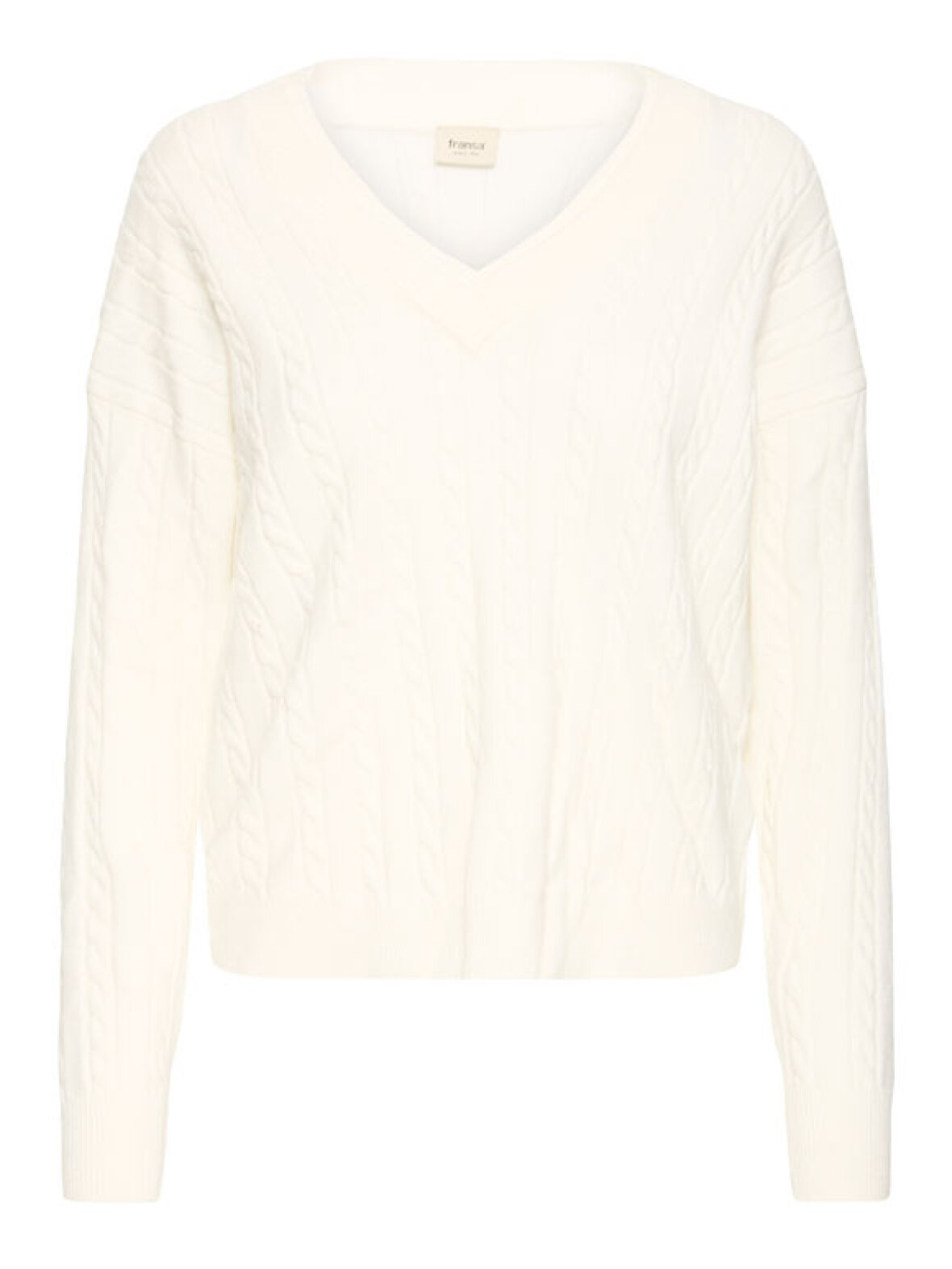 20617303 FRRenee 1, Strik off white – Blød strik med klassisk kabelmønster