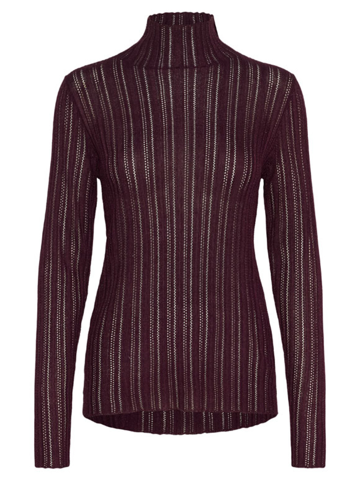 Elegant og feminin bluse fra Soaked in Luxury i en dyb bordeaux nuance med diskret glimmertråd, der giver et eksklusivt touch. Den ribstrikkede struktur og høje hals skaber et flatterende look, som både kan styles til jeans og nederdele – perfekt til både hverdagsbrug og festlige lejligheder.