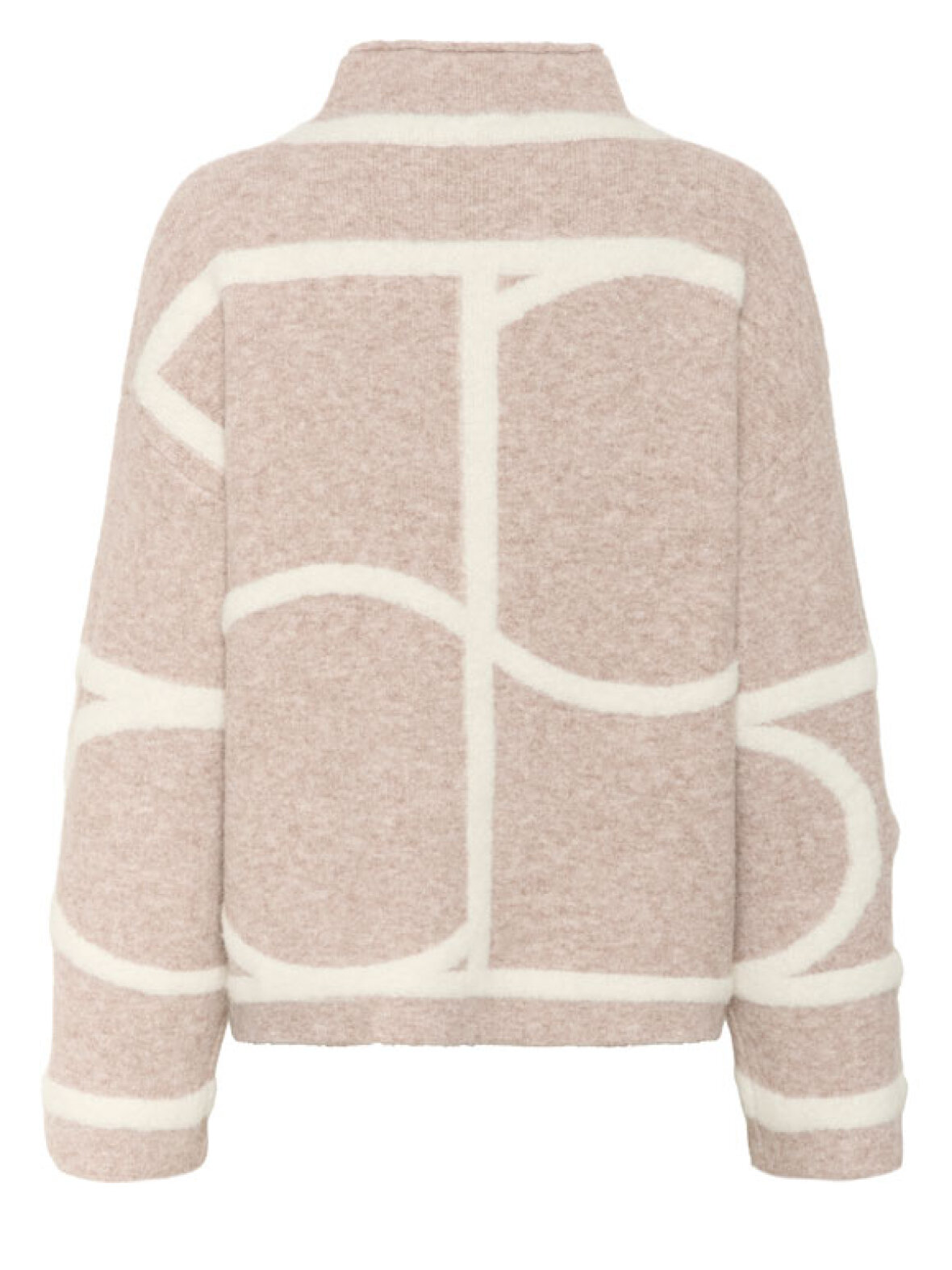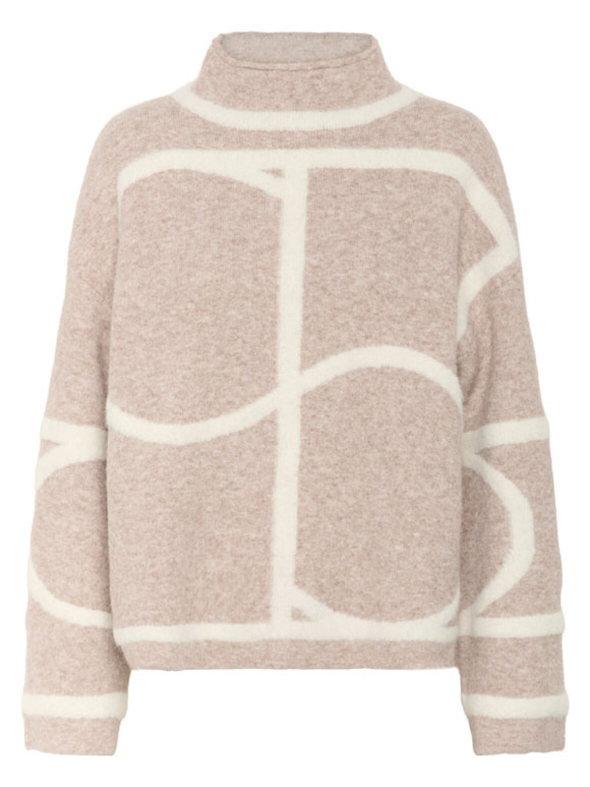 SLSorea Mono strikken fra Soaked in Luxury er en smuk og stilren strik i en varm sandfarve med kontrastmønster i hvid. Den bløde uldblanding og høje hals giver både komfort og et eksklusivt udtryk. Strikken har en løs pasform og et moderne grafisk design, der gør den perfekt til både jeans, skindbukser eller en lang nederdel for et chikt hverdagslook.