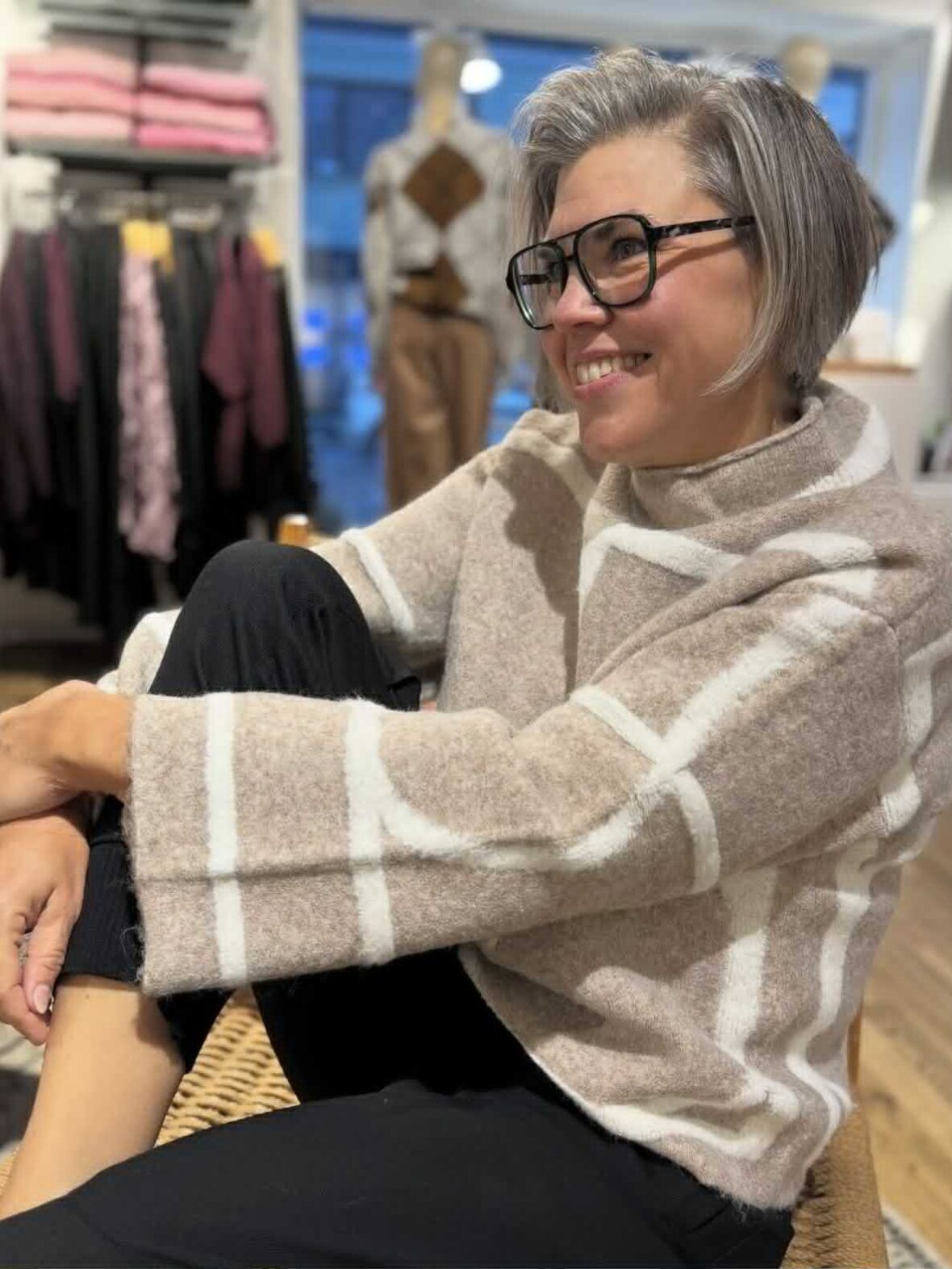 SLSorea Mono, Strik sand – Blød strik med moderne grafisk mønster