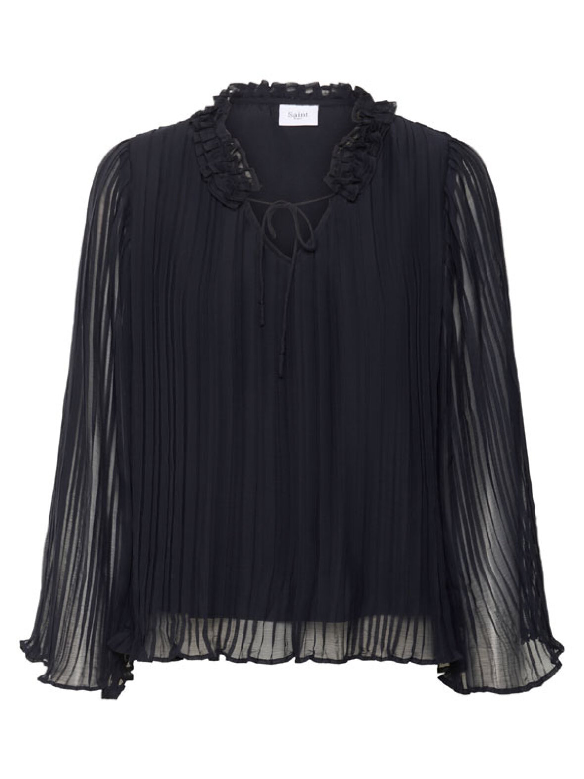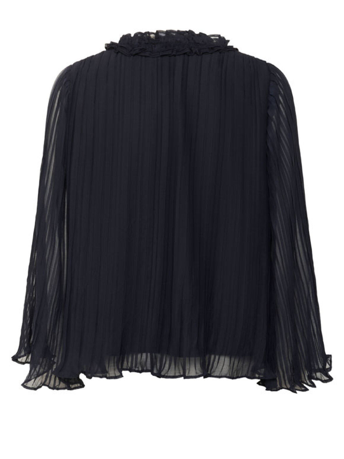 NuriSZ er den smukke plisserede bluse, der giver dit look et elegant og feminint twist. Den lette, transparente kvalitet skaber et eksklusivt udtryk, mens flæsedetaljerne ved halsen og bindebåndet foran giver blusen et romantisk touch. Perfekt til både jeans, skindleggings eller en festlig nederdel – den løfter ethvert outfit. Bemærk bluse er tranperant.