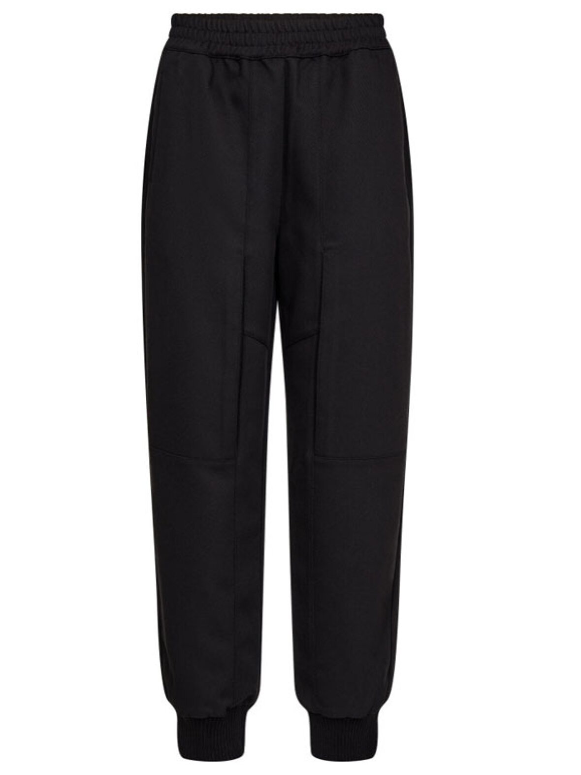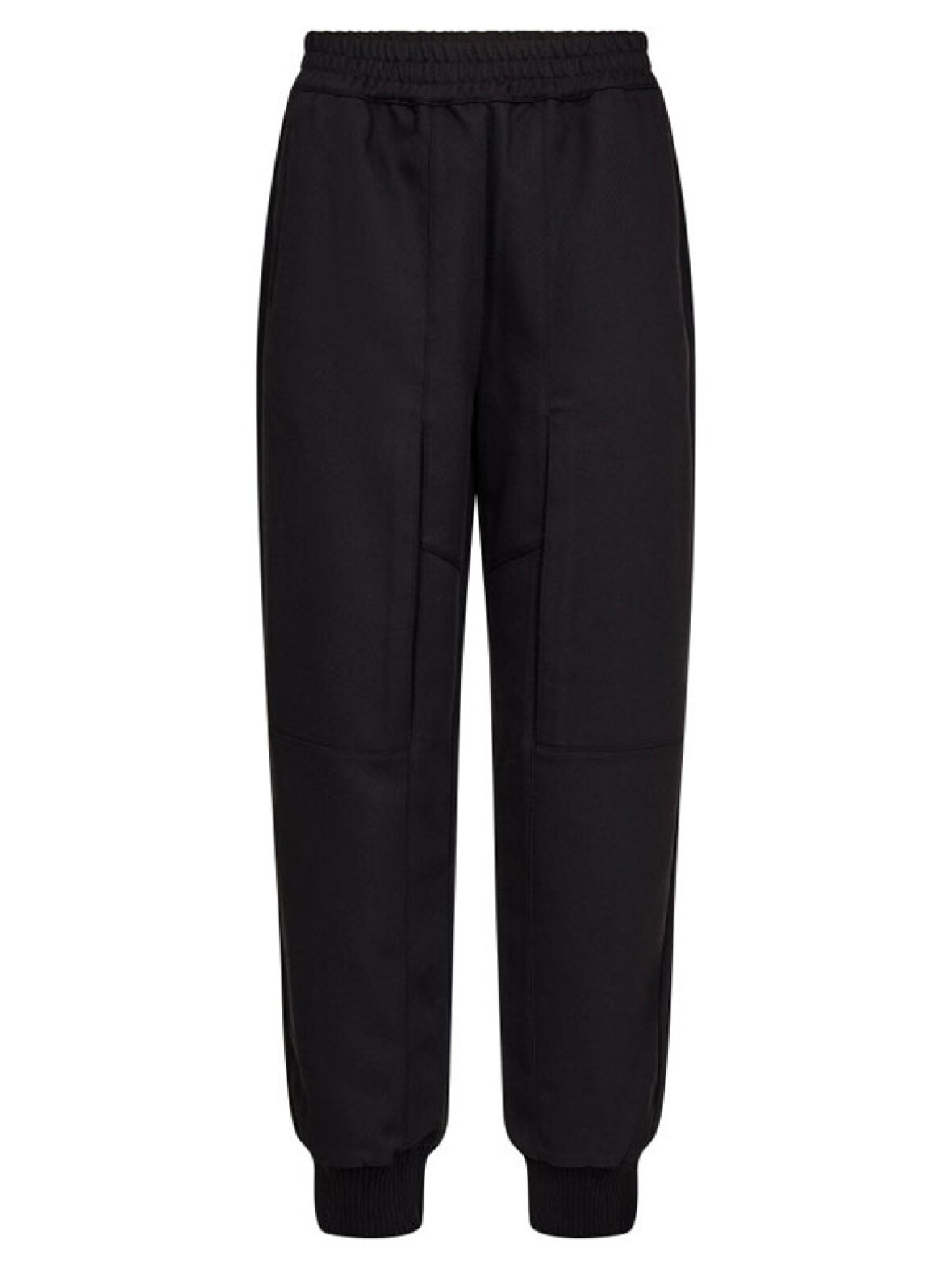 AlmiraCC bukserne fra Co’Couture kombinerer afslappet komfort med et moderne, urbant udtryk. De har elastik i taljen, synlige sømme og ribkant ved anklerne, som giver et sporty twist. Brug dem med en enkel t-shirt til hverdag – eller style med en feminin top for et cool mix.