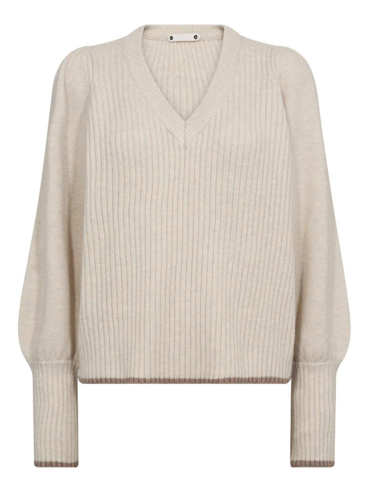RowCC Puff strikken fra Co’Couture er den perfekte kombination af komfort og feminin elegance. Den er lavet i en blød ribkvalitet med smuk V-udskæring, puffærmer og ekstra lange manchetter, som giver et moderne og eksklusivt udtryk. En klassiker i garderoben, der kan styles både til jeans og nederdele for et stilrent look.