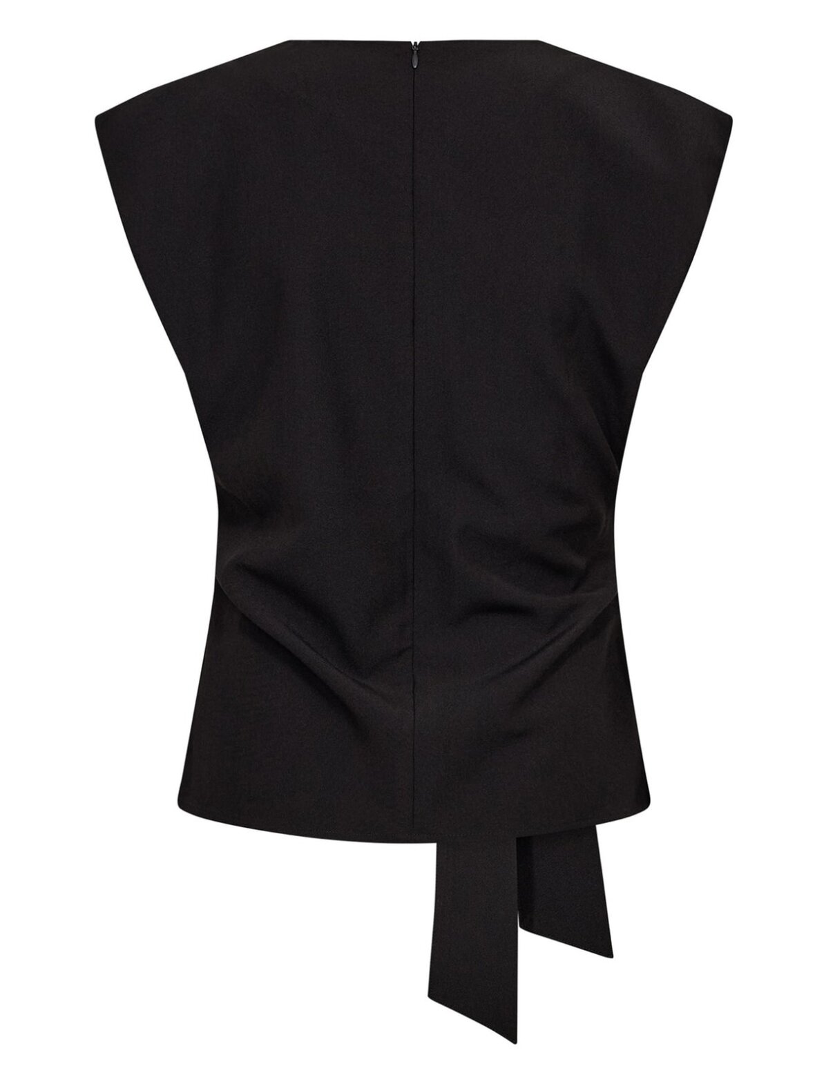 35957 NolanCC Pleat, Top sort – Elegant sort top med bindebånd