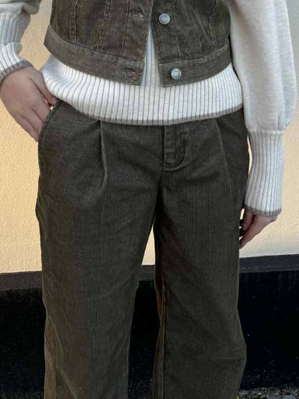ES425-304 ESParisa, Bukser grøn / stone grey – Fløjl med cool vintage-look