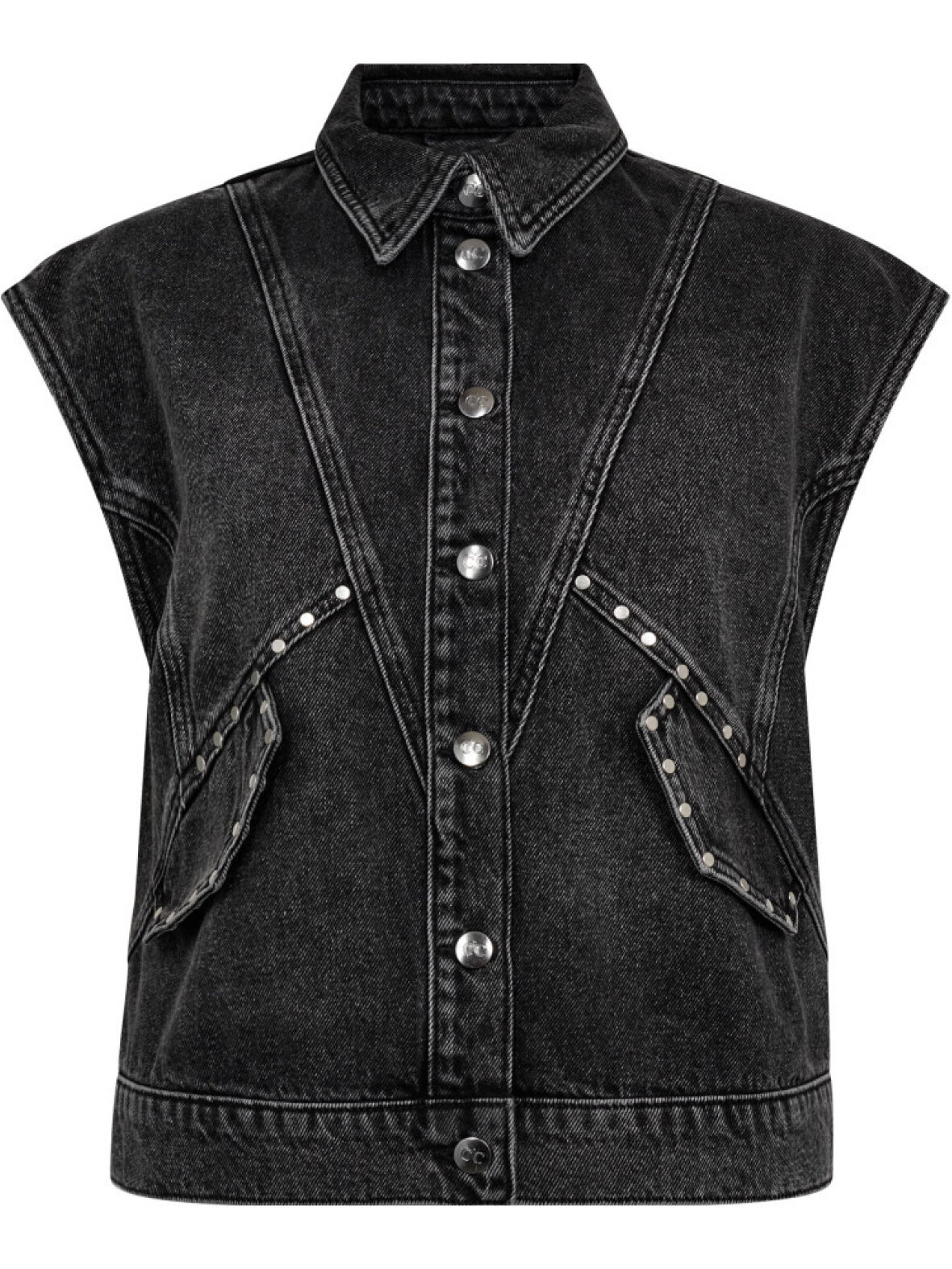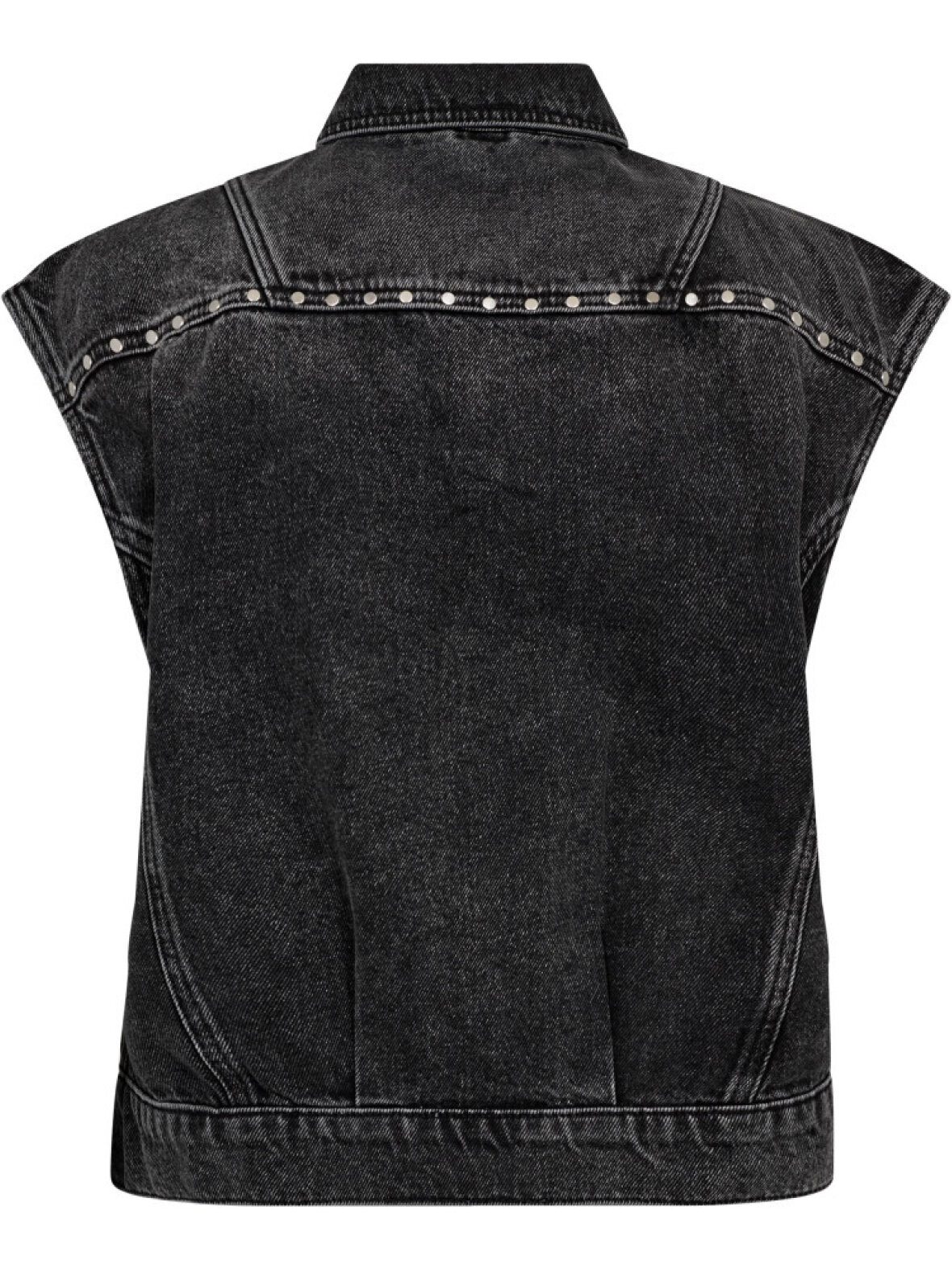 30367 VickyCC Stud, Vest sort denim – Cool denimvest med nitter
