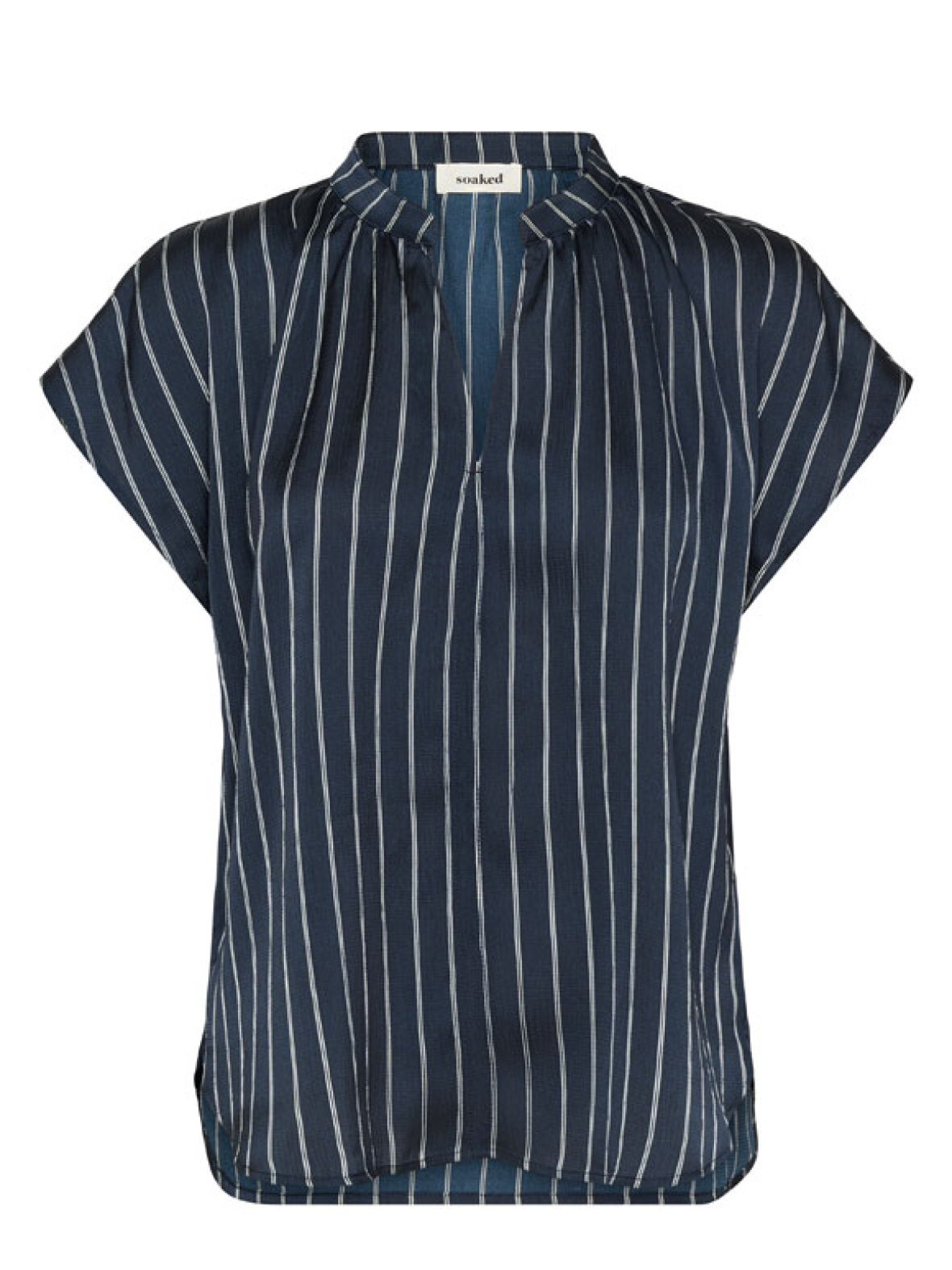 Denne smukke stribede top er perfekt, når du ønsker et elegant men afslappet look. Den har korte “vinge”-ærmer, en flot V-hals med lille ståkrave og et blødt fald i stoffet, der gør den enormt behagelig at have på. En stilfuld favorit til både jeans, tailoring og nederdele.
