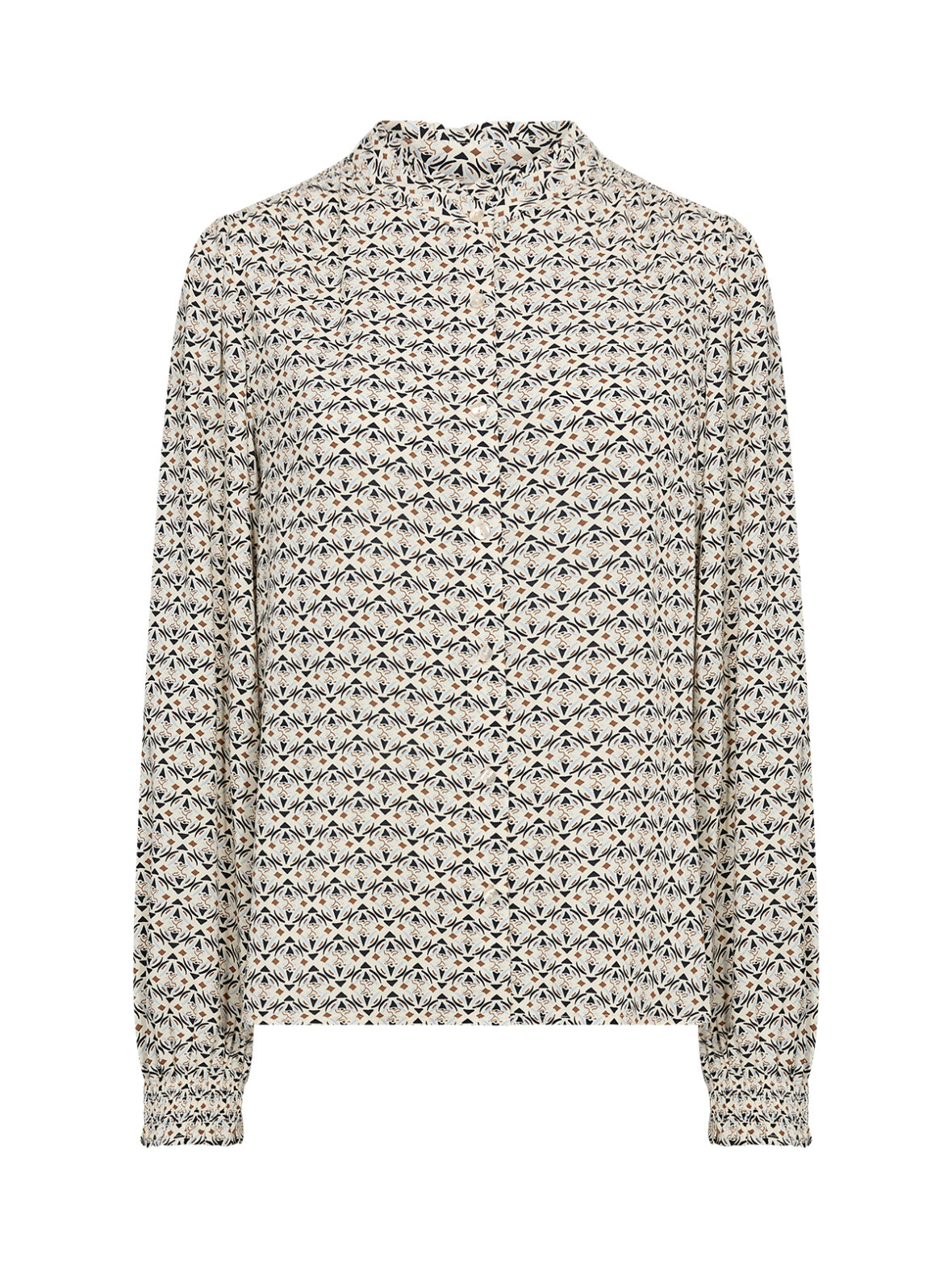 En smuk skjorte i et roligt og eksklusivt blåligt print, der giver dit outfit et instant løft. Den falder flot, føles let på kroppen og er lavet i blød LENZING™ ECOVERO™-viskose – et bæredygtigt valg med masser af komfort. Style den med jeans, sorte bukser eller en fin nederdel alt efter dagens look.