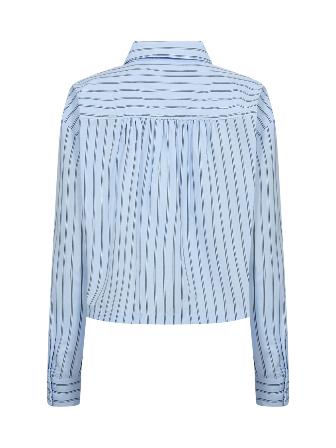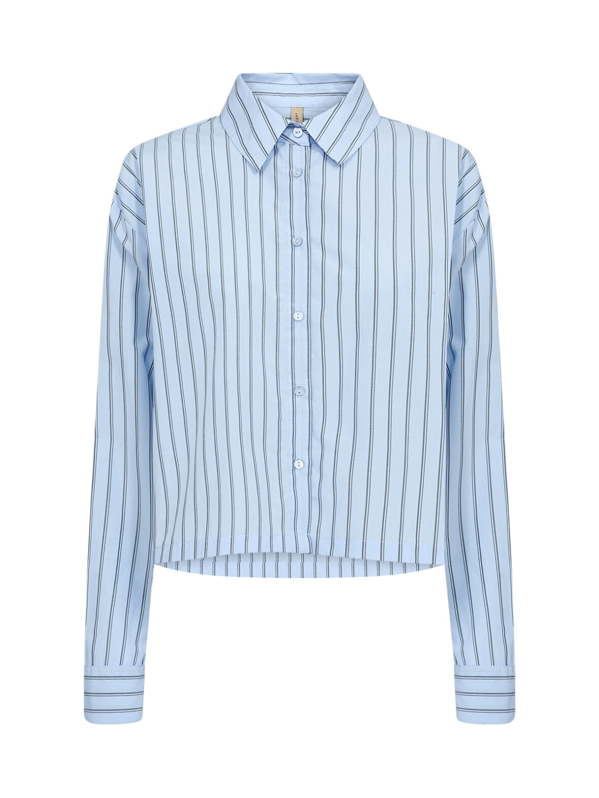 SC-Bardot 1 fra Soya Concept er en moderne fortolkning af den stribede skjorte. Den lyseblå farve giver et friskt udtryk, mens den bløde og bæredygtige kvalitet gør den perfekt til hverdagen. Den let cropped længde og de fine striber skaber et cool, men stadig tidløst look.