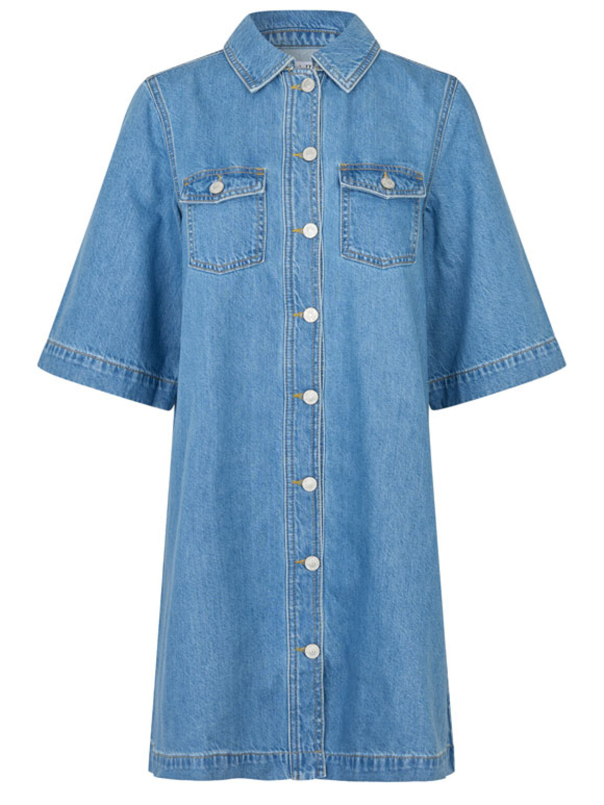 Mira-M kjolen fra mbyM er en moderne og casual denimkjole, der giver et effortless cool udtryk. Den har korte ærmer, knaplukning hele vejen ned og to brystlommer, som giver kjolen et klassisk workwear-touch. En let og anvendelig style, der fungerer perfekt med både sneakers og sandaler – uanset om sommeren står på ferie, hverdagsbrug eller en spontan tur ud.