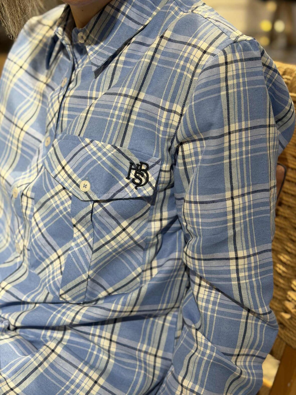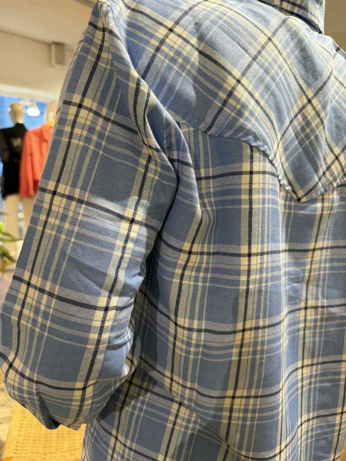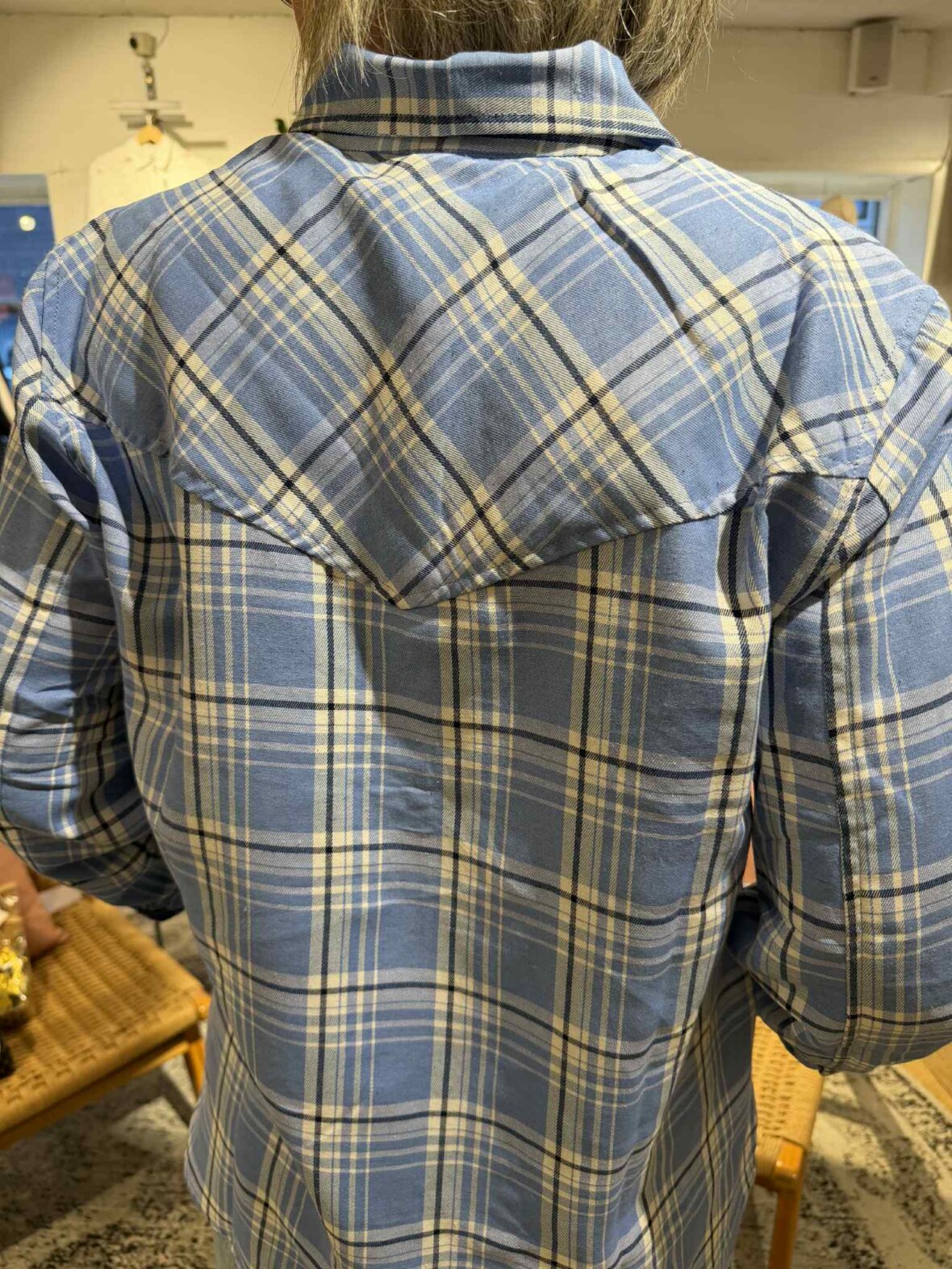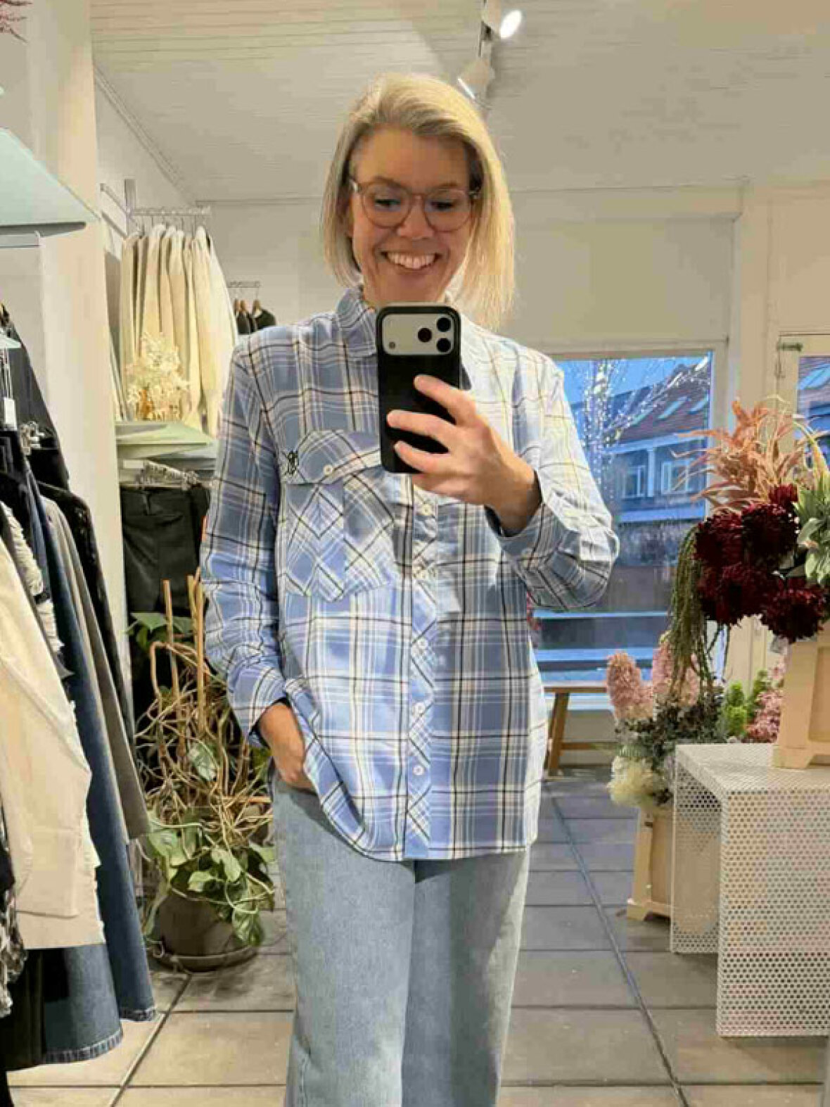 En blød, let oversize skjorte i smukke blå tern, der giver dit look et frisk og afslappet udtryk. Skjorten er lavet af stock fabrics – et mere bæredygtigt valg med mindre spild, uden at gå på kompromis med kvaliteten.