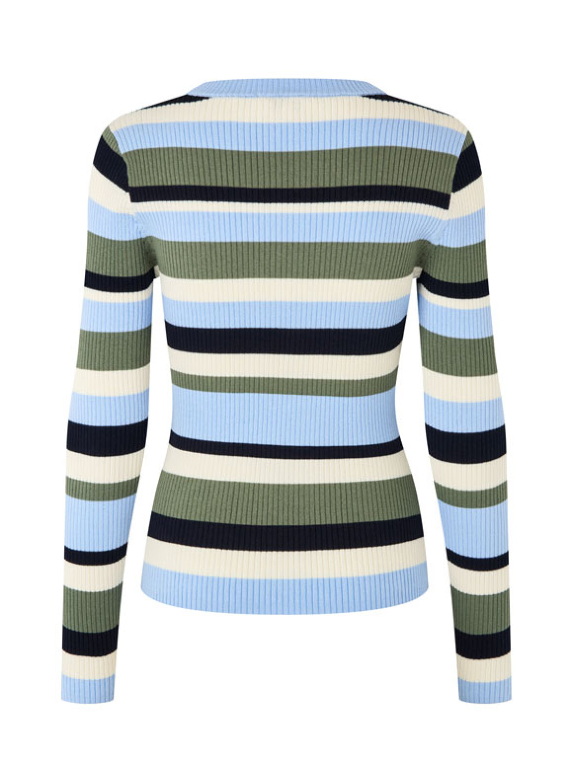 Turbanova-M fra mbyM er en skøn ribstrikket bluse i flotte blå, grønne og neutrale striber. Den tætsiddende pasform og det elastiske materiale giver en superbehagelig og flatterende silhuet. En nem hverdagsfavorit, der fungerer perfekt til både jeans, cargobukser og nederdele – og som giver dit outfit et friskt farveboost.