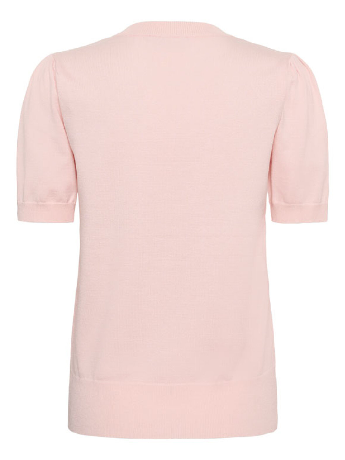 En elegant og enkel strik T-shirt fra Saint Tropez, der giver et blødt og feminint udtryk til dine hverdagslooks. Den lyserøde farve gør den let at style til både jeans, nederdele og under blazere, og kvaliteten føles skøn mod huden hele dagen.