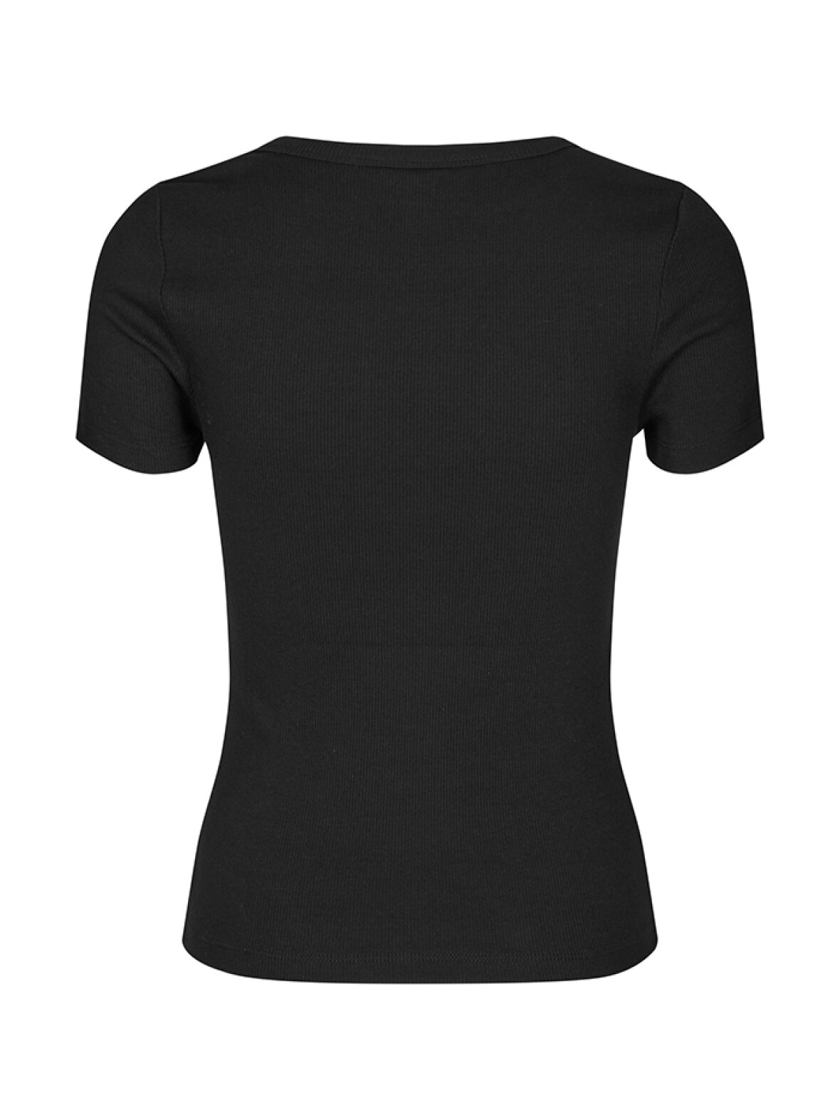 Otis-M fra mbyM er den sorte basistop, der altid redder dit outfit. Den bløde ribkvalitet i TENCEL™ Modal giver en luksuriøs, strækbar og åndbar pasform, der smyger sig flot til kroppen uden at føles stram. En uundværlig hverdagsstyle, der fungerer perfekt alene eller under skjorter, strik og jakker.