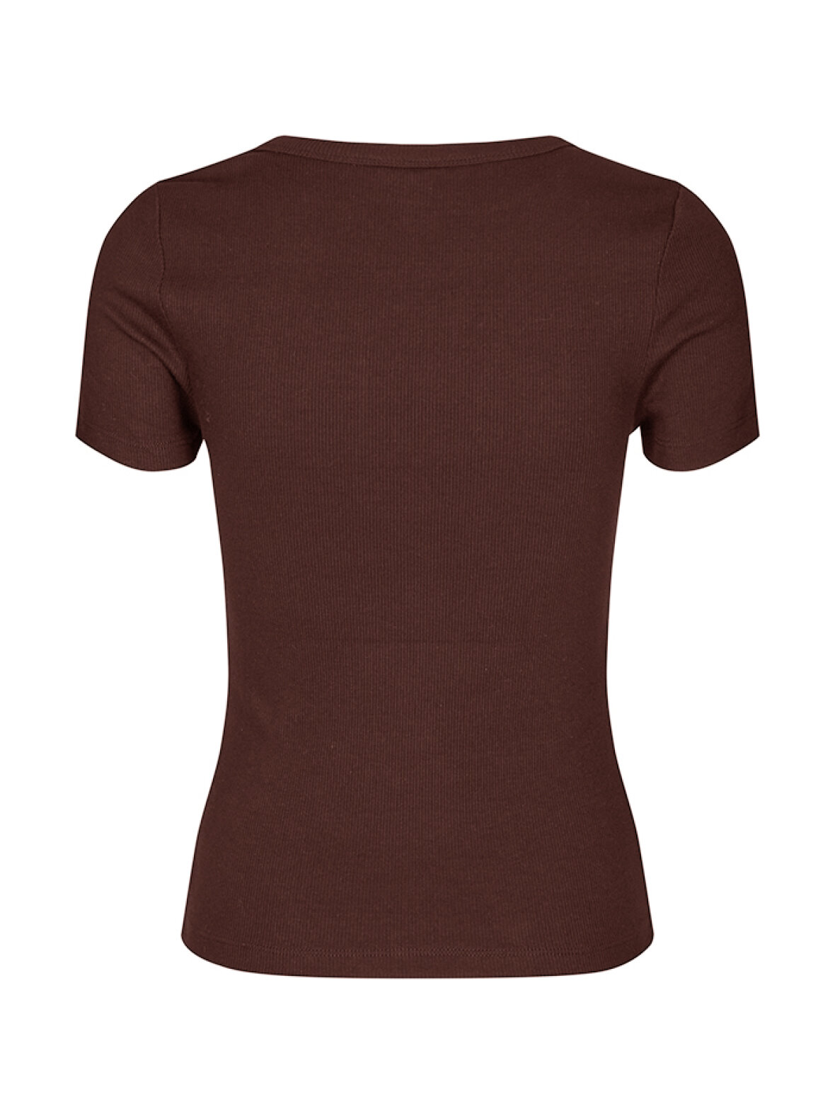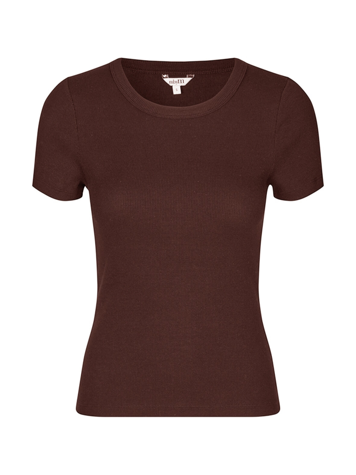 Otis-M fra mbyM er den brune basistop, du altid mangler i garderoben. Den bløde ribkvalitet i TENCEL™ Modal giver en luksuriøs, strækbar og åndbar pasform, der sidder flot uden at føles stram. Perfekt til både jeans, nederdele og som det bløde lag under strik og skjorter.
