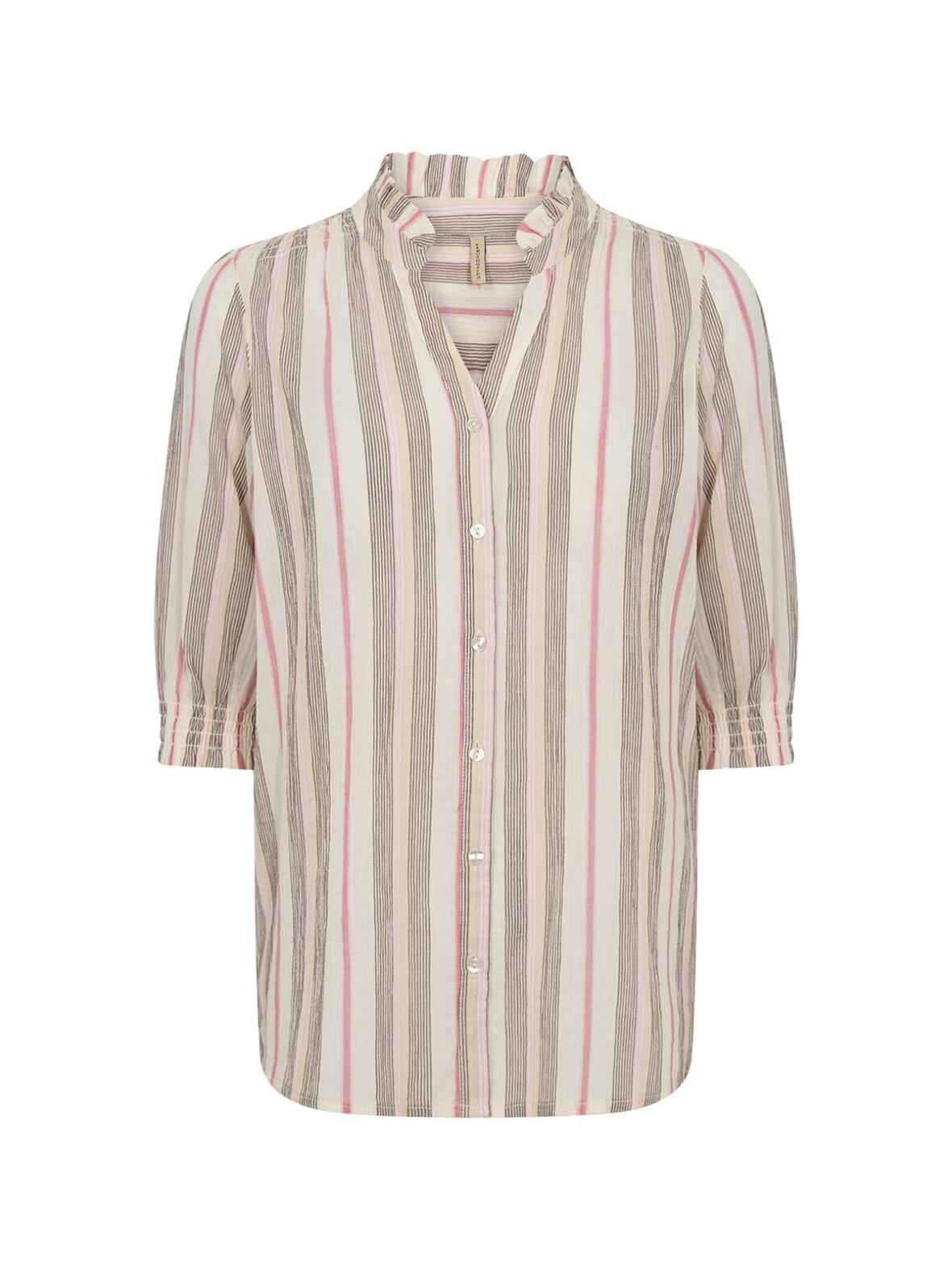 SC-Carola 1 fra Soya Concept er en feminin og let skjorte med fine lyserøde striber, der giver et blødt og sommerligt udtryk. Den er perfekt til både hverdag og pænere brug – style den med jeans, shorts eller lette bukser for et afslappet, men velklædt look.