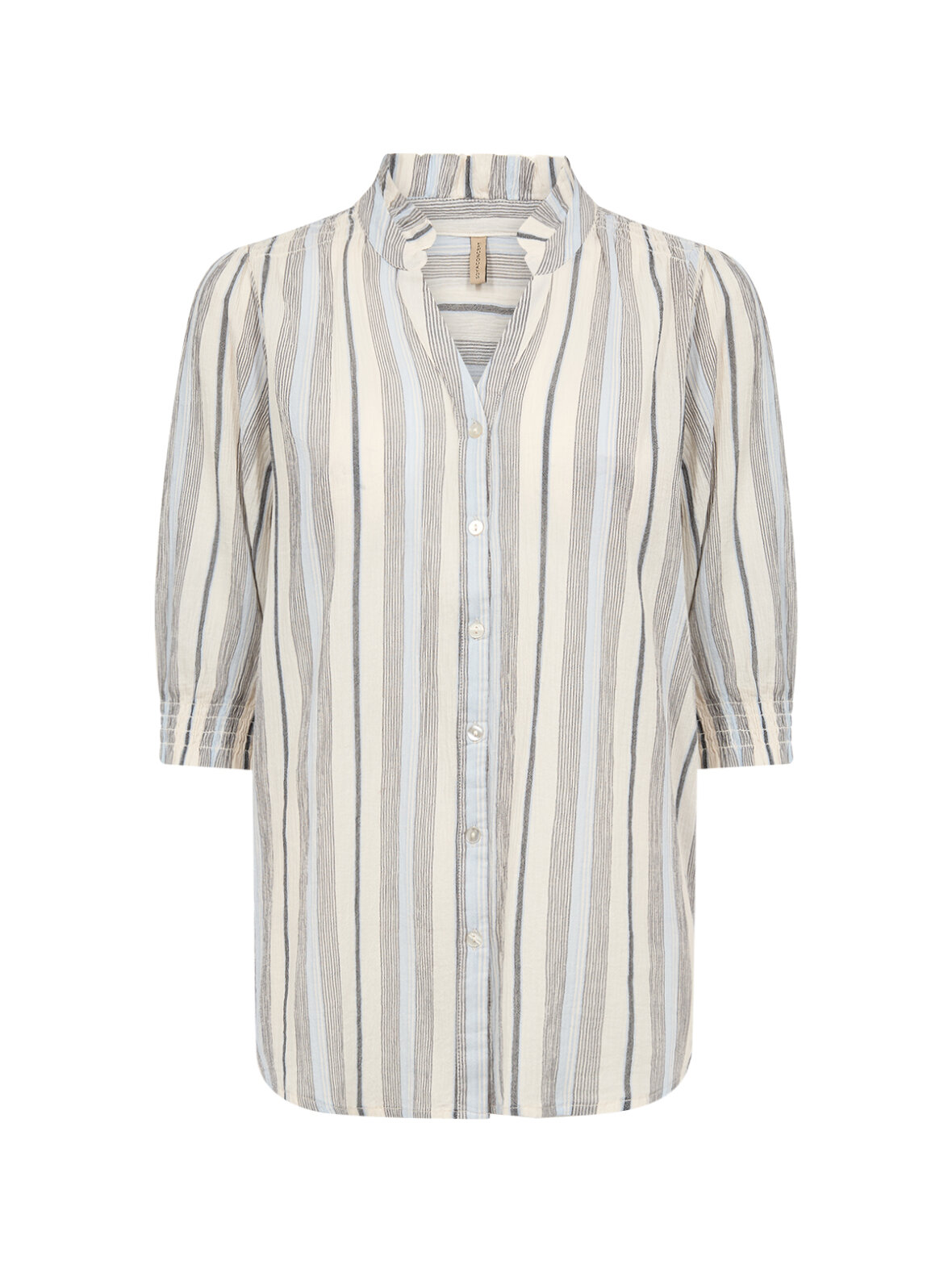 SC-Carola 1 fra Soya Concept er den perfekte skjorte til dig, der elsker et afslappet og stilrent look. De fine blå striber, den lette kvalitet og de korte ærmer gør den ideel til både hverdag og sommerens arrangementer.
