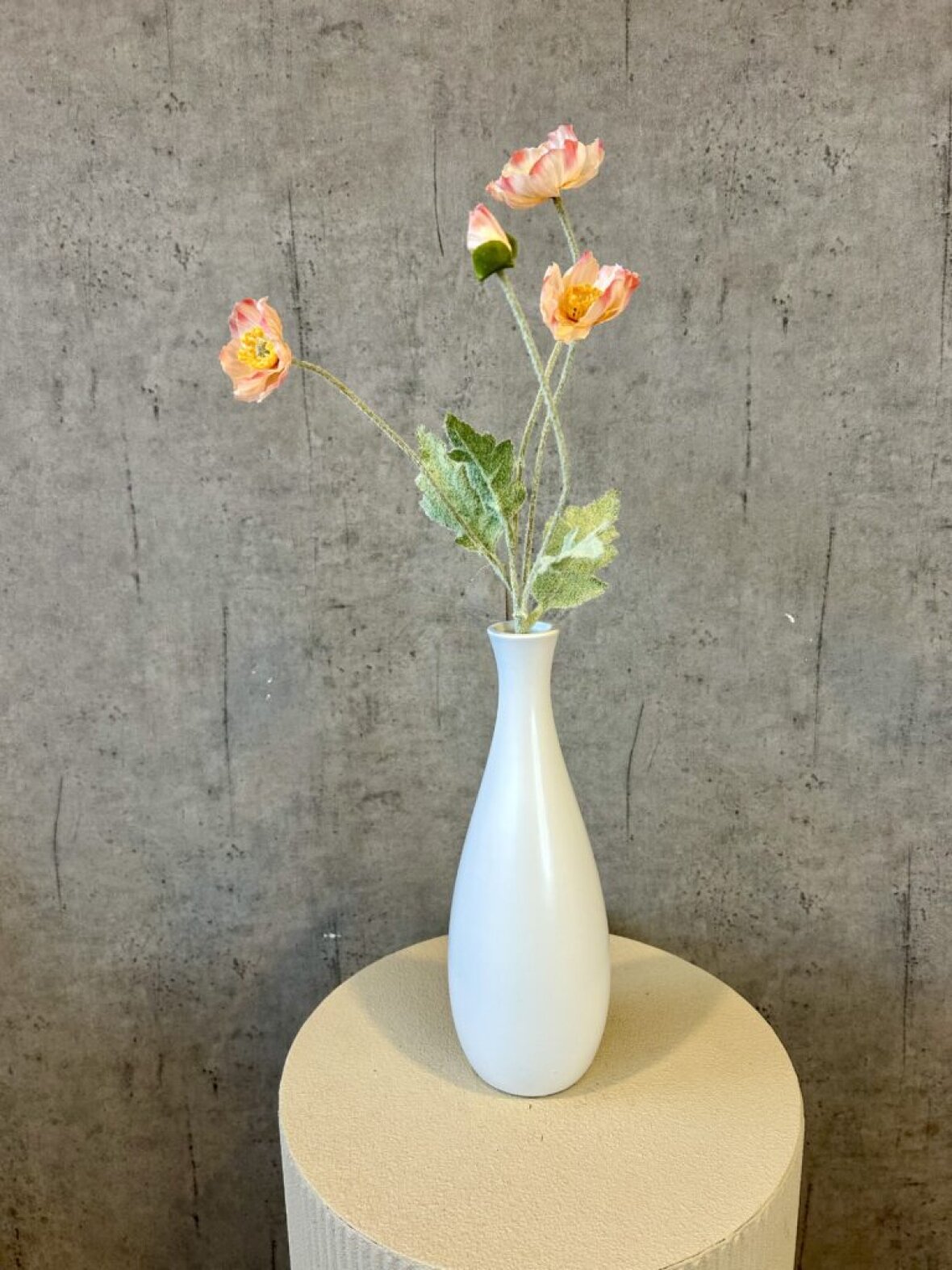 Giv din indretning et varmt og blødt udtryk med denne smukke valmue i abrikos fra Barbara. Den fine, støvede nuance og de lette blomsterhoveder skaber en rolig og elegant stemning i vasen – perfekt til både moderne og romantiske hjem.