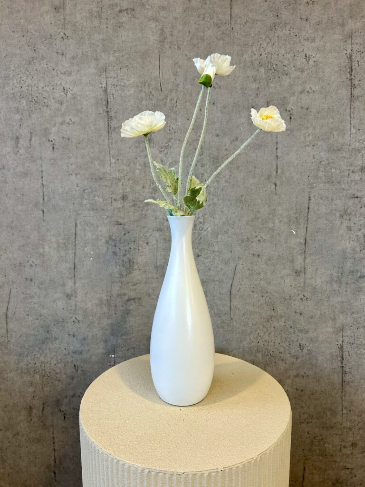 Skab et let og elegant udtryk med denne smukke hvide valmue fra Barbara. De fine, åbne blomster og det naturtro design giver et roligt og stilrent look i vasen – perfekt til både nordisk indretning og romantiske detaljer.