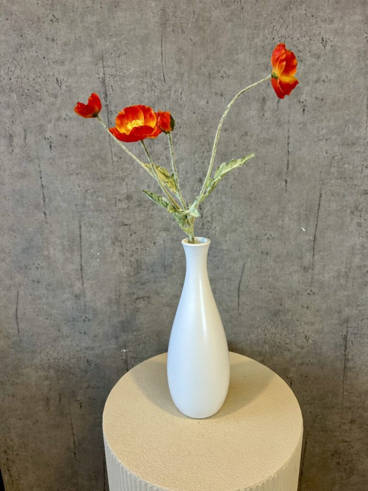 Skab et let og sommerligt udtryk med denne smukke orange valmue på 61 cm. De fine, åbne blomster og den levende farve tilfører varme og personlighed til din vase – perfekt til både moderne og romantisk boligindretning.