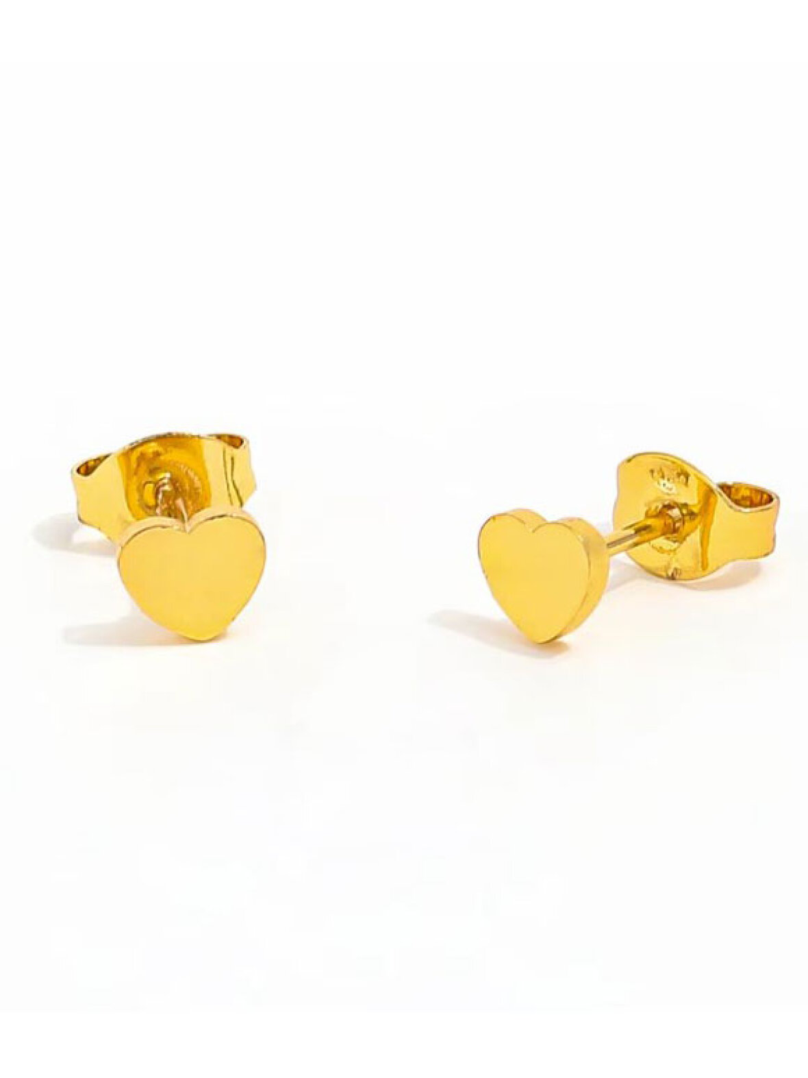 Søde og feminine Ellen-øreringe med små hjerteformede studs i 18K guldbelagt finish. Et tidløst design, der passer perfekt til både hverdag og festlige anledninger. De fine hjerter giver et blødt, romantisk udtryk og gør dem ideelle som gave – eller som en lille selvforkælelse.
