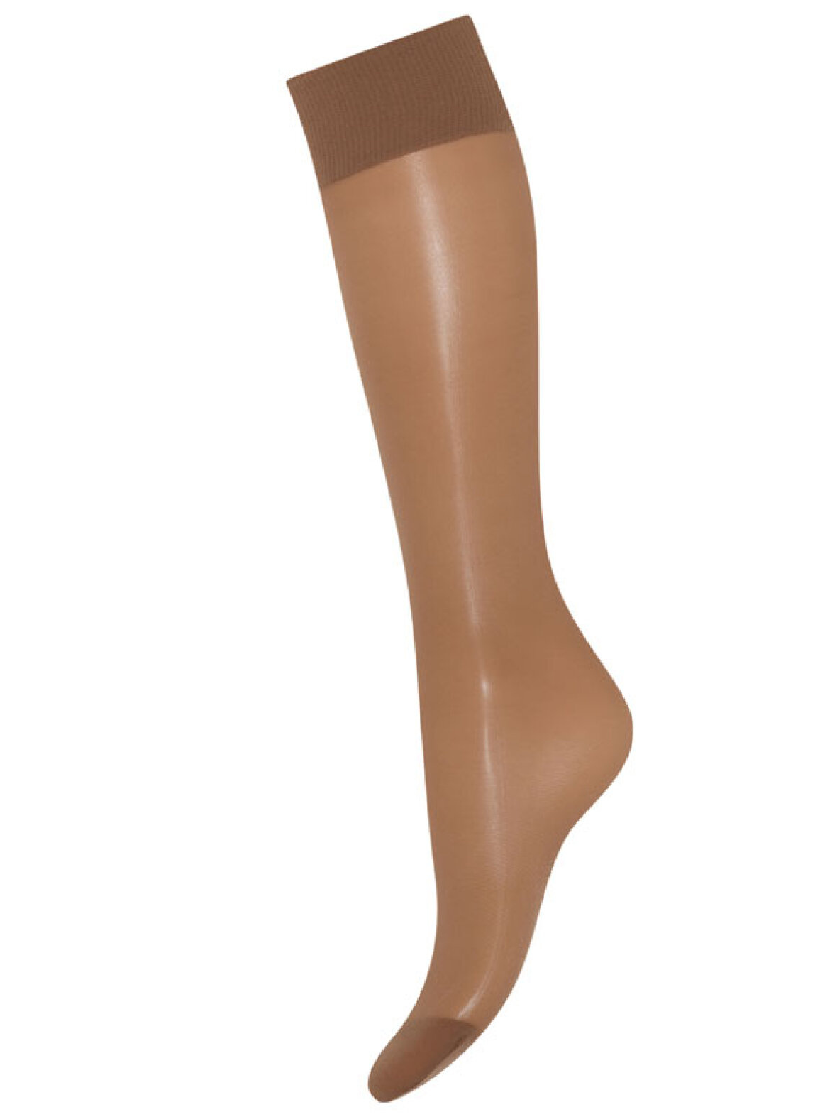 Elegante kneehigh-strømper fra Decoy i en smuk caramel nuance. De er lavet i 20 denier med silklook, som giver et glat og eksklusivt udtryk. Den bløde elastiske kant sikrer, at de bliver siddende behageligt hele dagen. Perfekte til både hverdag og mere formelle outfits.