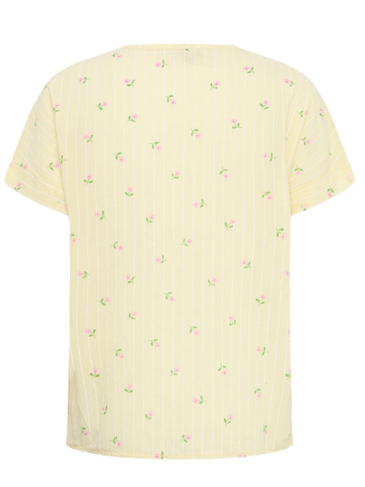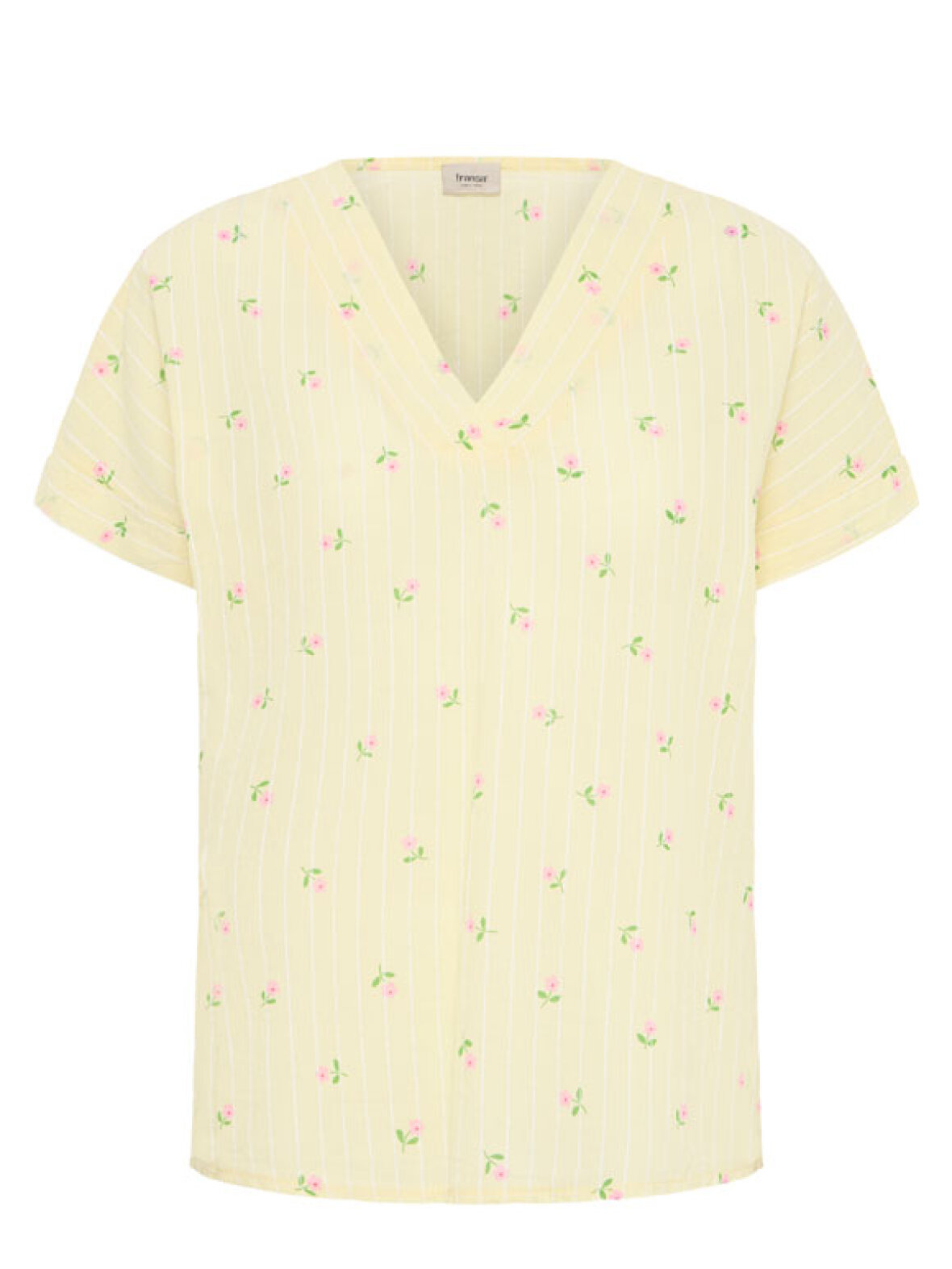 FRJulietta blusen fra Fransa kommer her i en smuk, blød gul nuance med fine små blomster, der giver et let og romantisk udtryk.