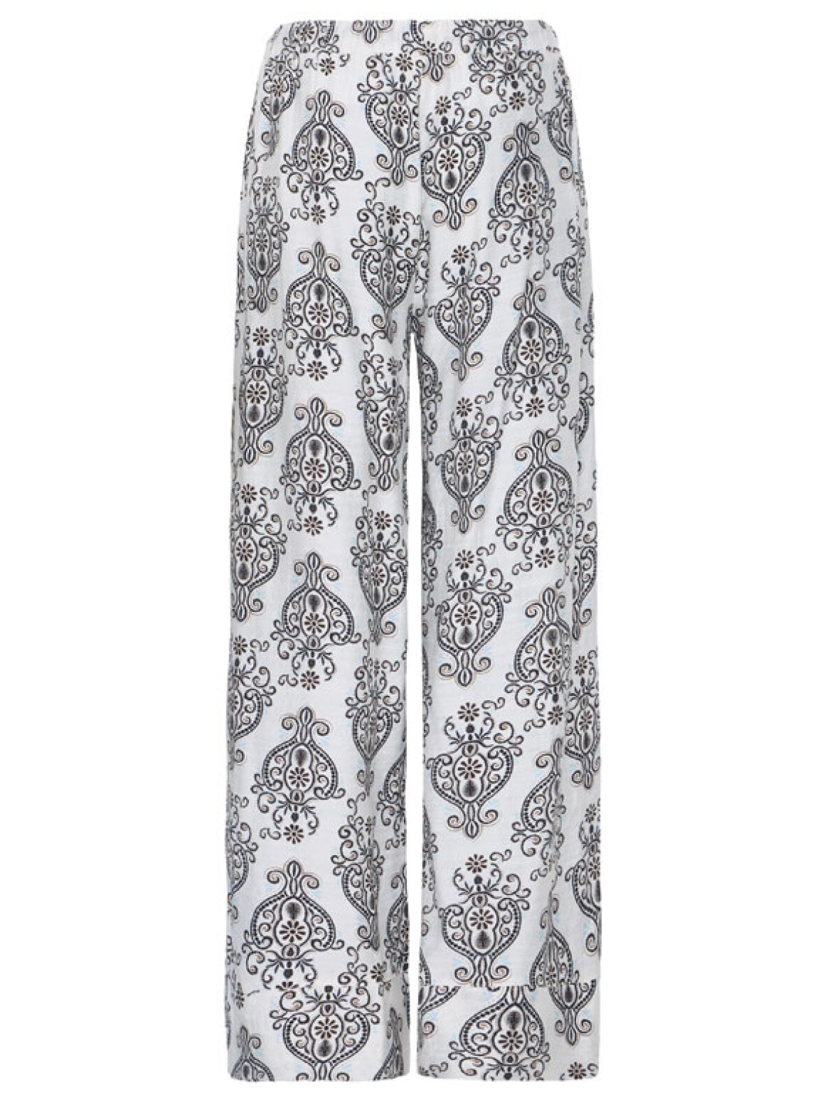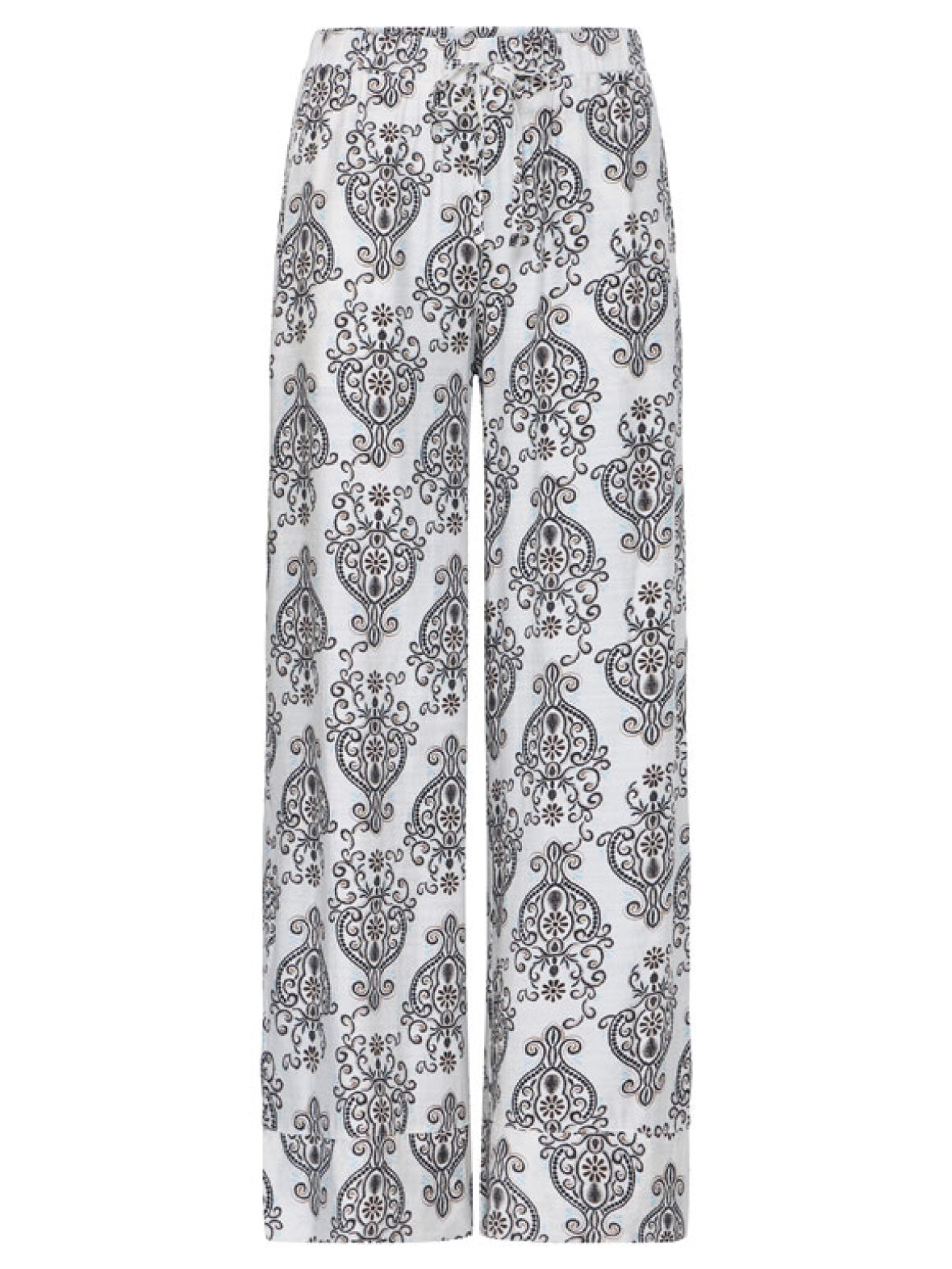 Det smukke mønster giver et feminint og eksklusivt udtryk, mens den bløde kvalitet falder let og elegant langs kroppen. Den elastiske talje med bindebånd gør dem ekstra behagelige at have på – perfekt til både hverdag, ferie og hyggelige dage.