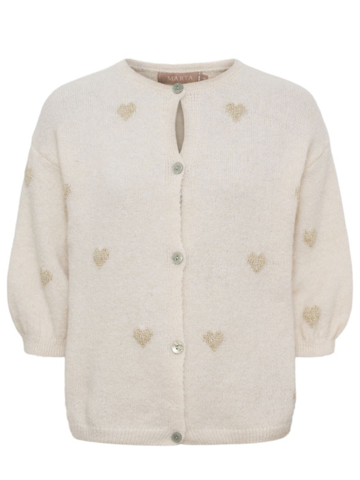 De små broderede hjerter giver et diskret, men charmerende twist, som tilfører cardiganen personlighed og et eksklusivt touch.